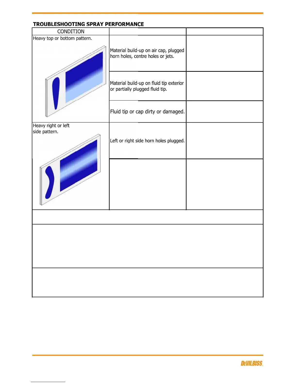 the cap one-half turn and spray another pattern. If the defect is inverted, obstruction is on the air cap. Clean the