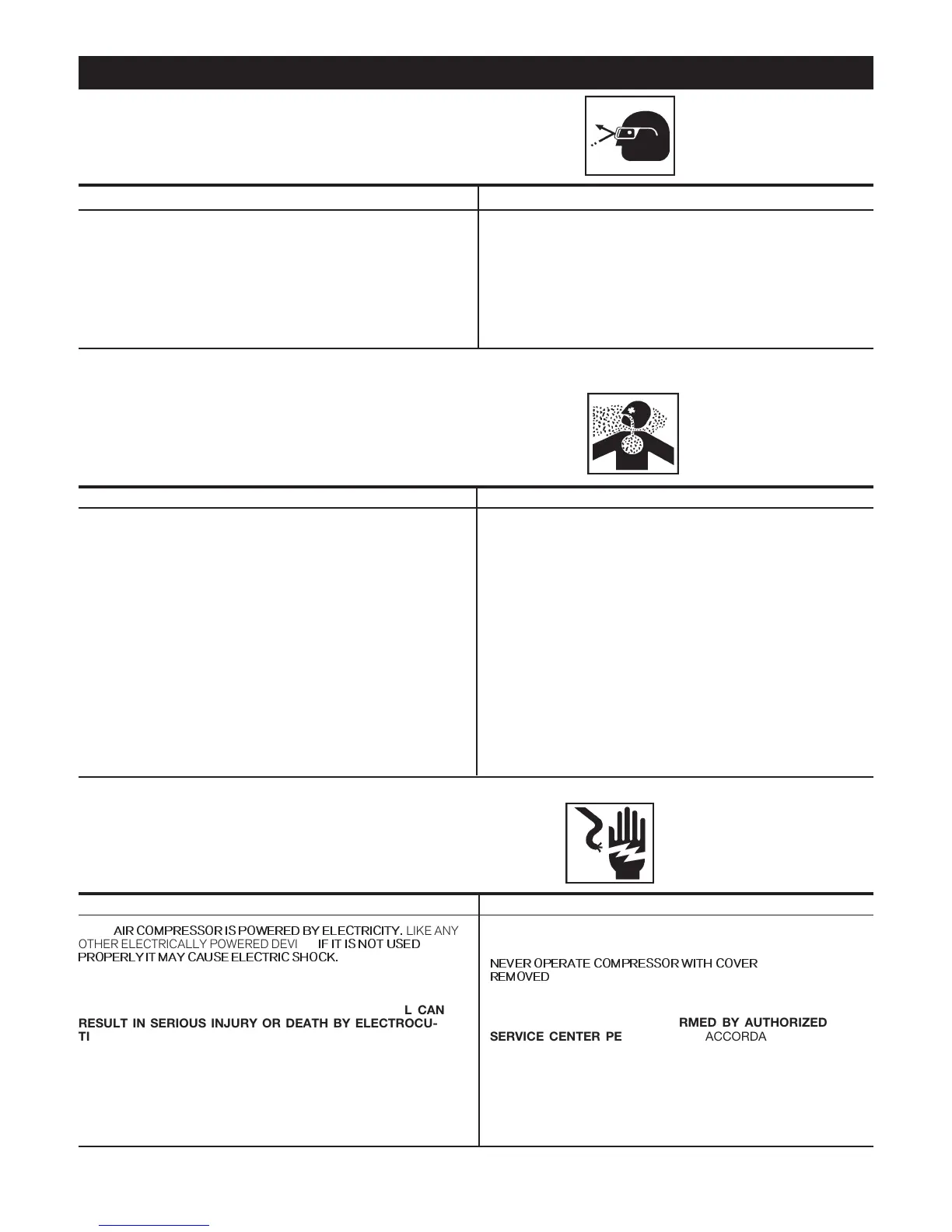 NEVER OPERATE THE COMPRESSOR OUTDOORS WHEN IT IS