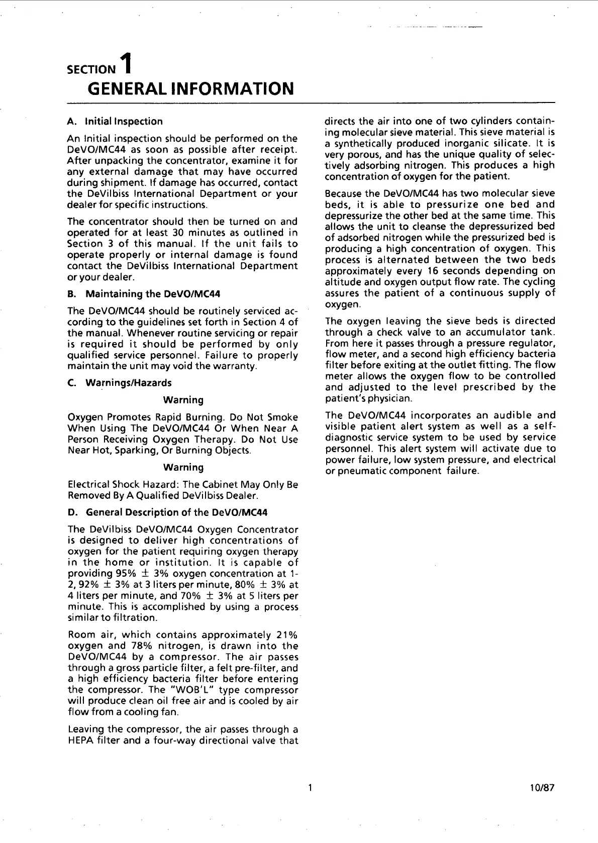 DeVilbiss DeVO/MC44-90 - General Information; Initial Inspection; Maintaining the DeVO;MC44; Warnings and Hazards