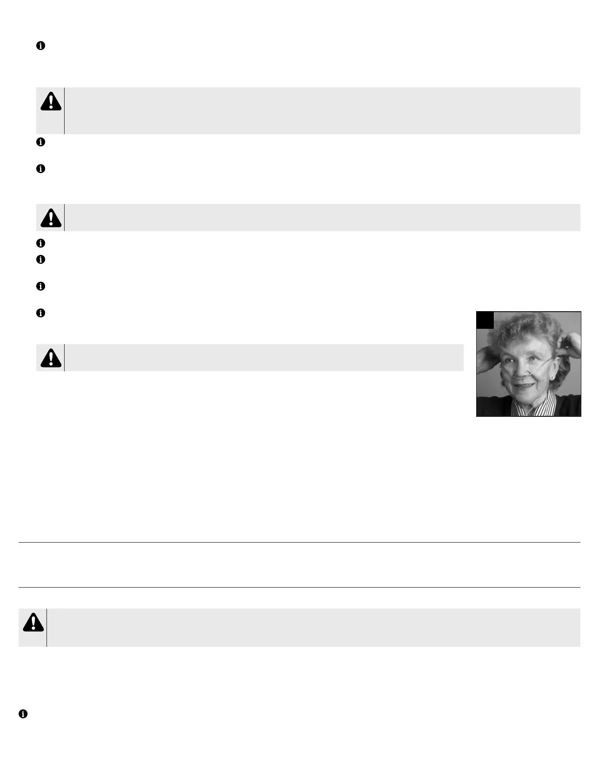 L’oxygène facilite le début et la propagation d’incendies. Ne laissez pas la canule nasale ou le masque sur les couvre-lits ou les coussins de sièges. Si le