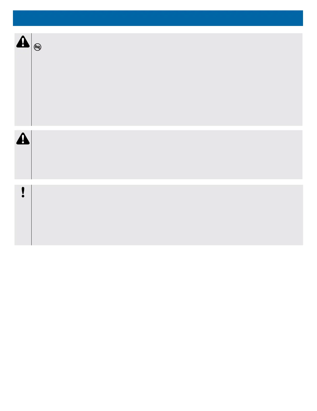 • Do not bring the device or accessories into a Magnetic Resonance (MR) environment as it may cause unacceptable risk to the patient or damage to