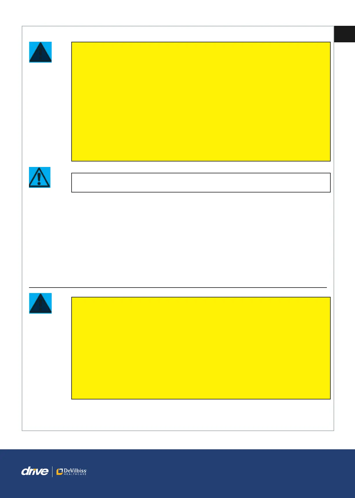 • Fahren Sie mit Ihrem Elektrorollstuhl nicht auf Verkehrsstraßen oder Autobahnen.