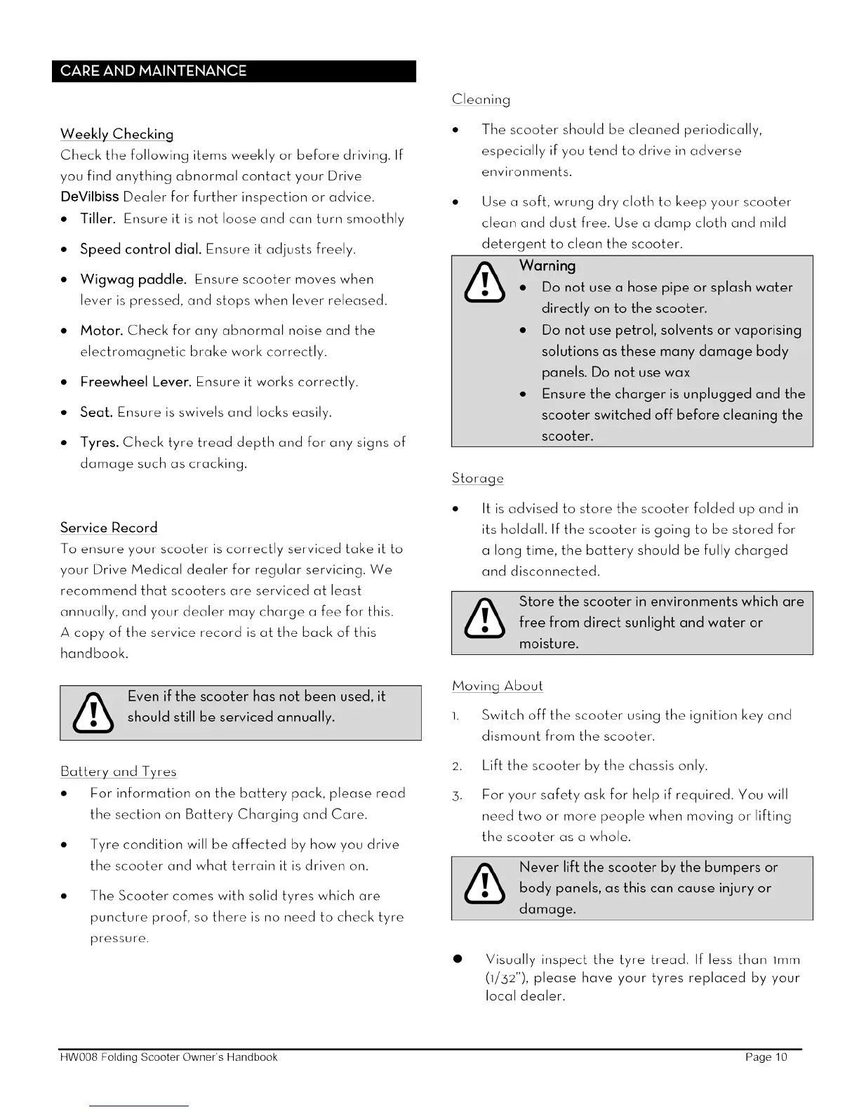 DeVilbiss Drive - Care and Maintenance; Weekly Checking; Cleaning Procedures; Storage Recommendations