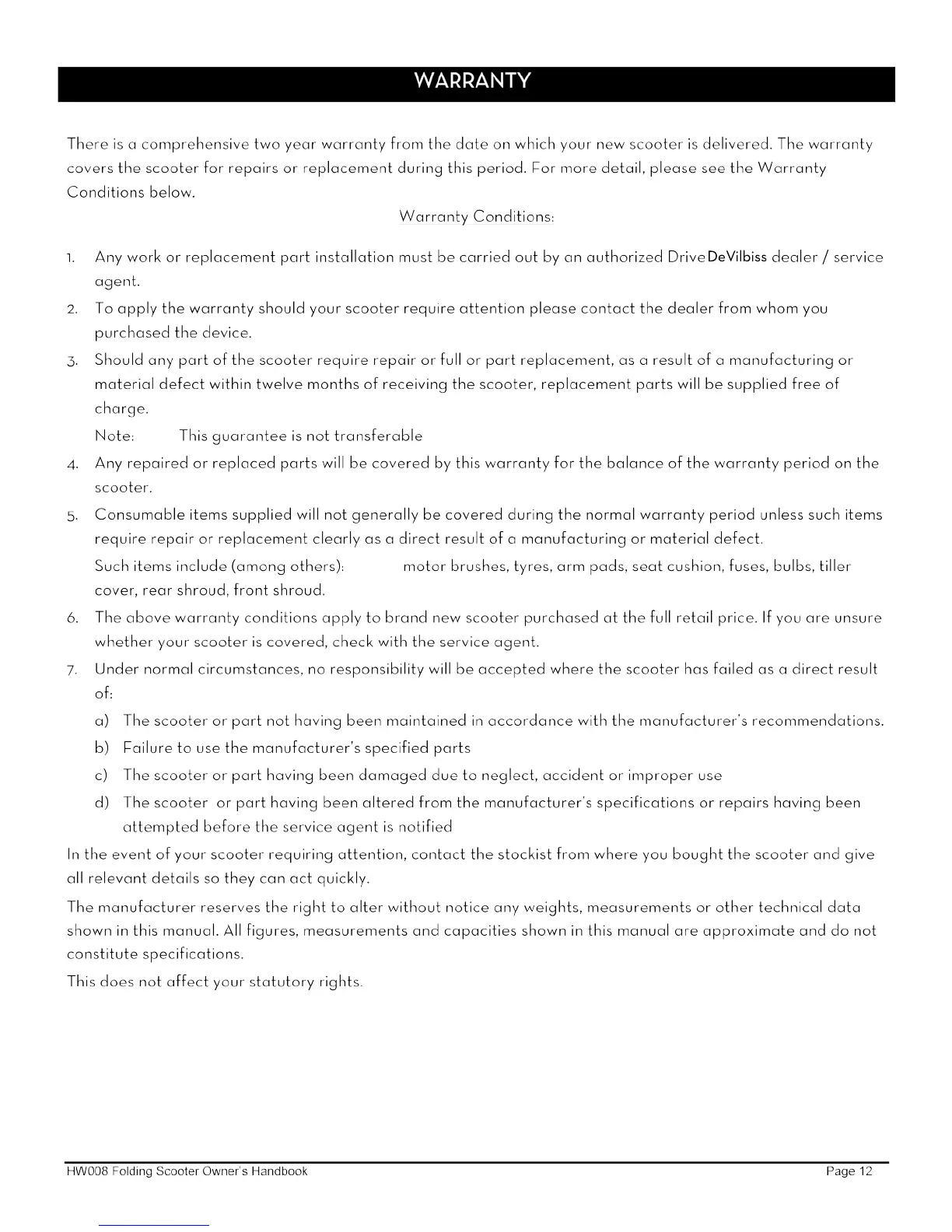 DeVilbiss Drive - Warranty; Warranty Conditions