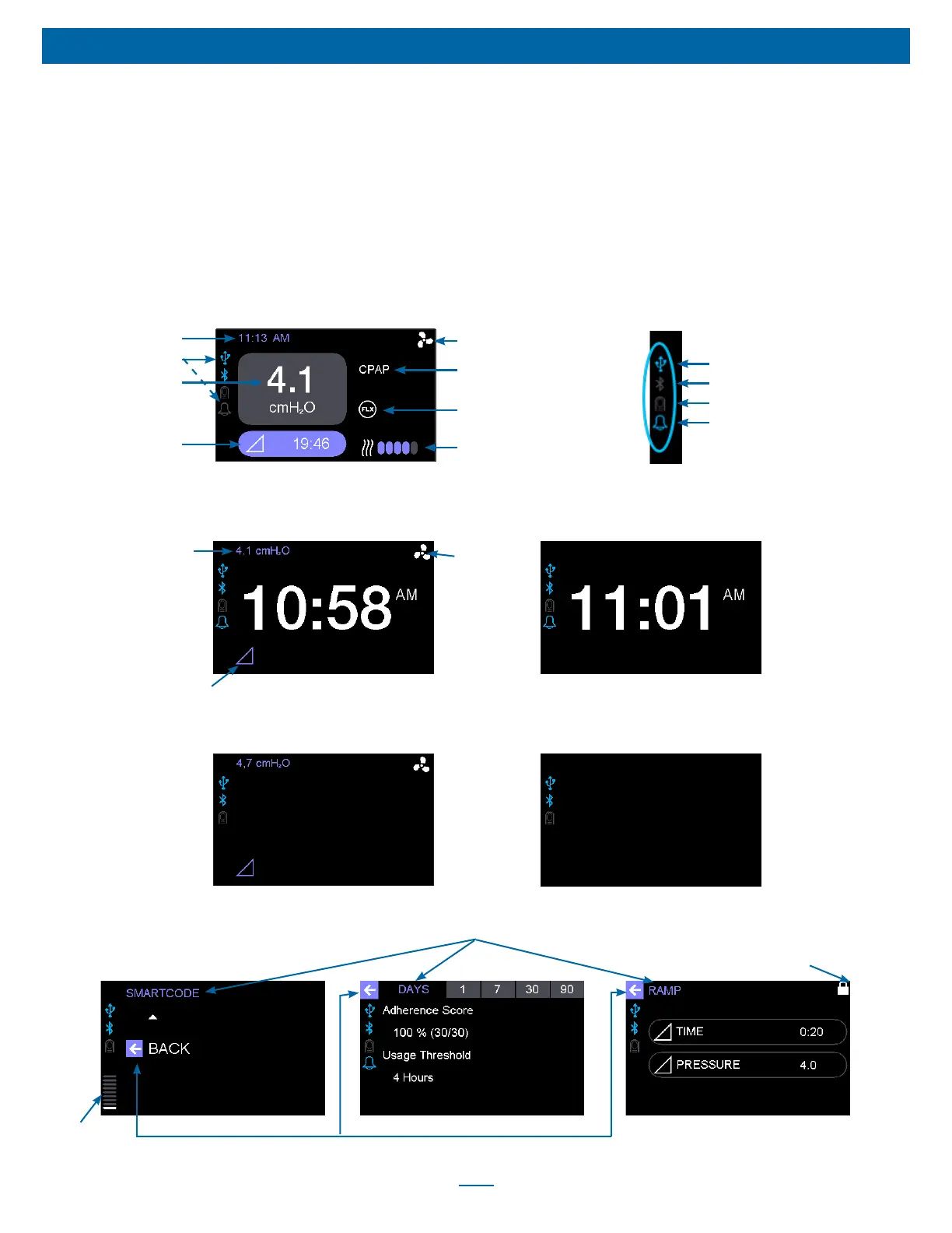 Use the following steps to enter Clinical menu and change therapy and comfort settings: