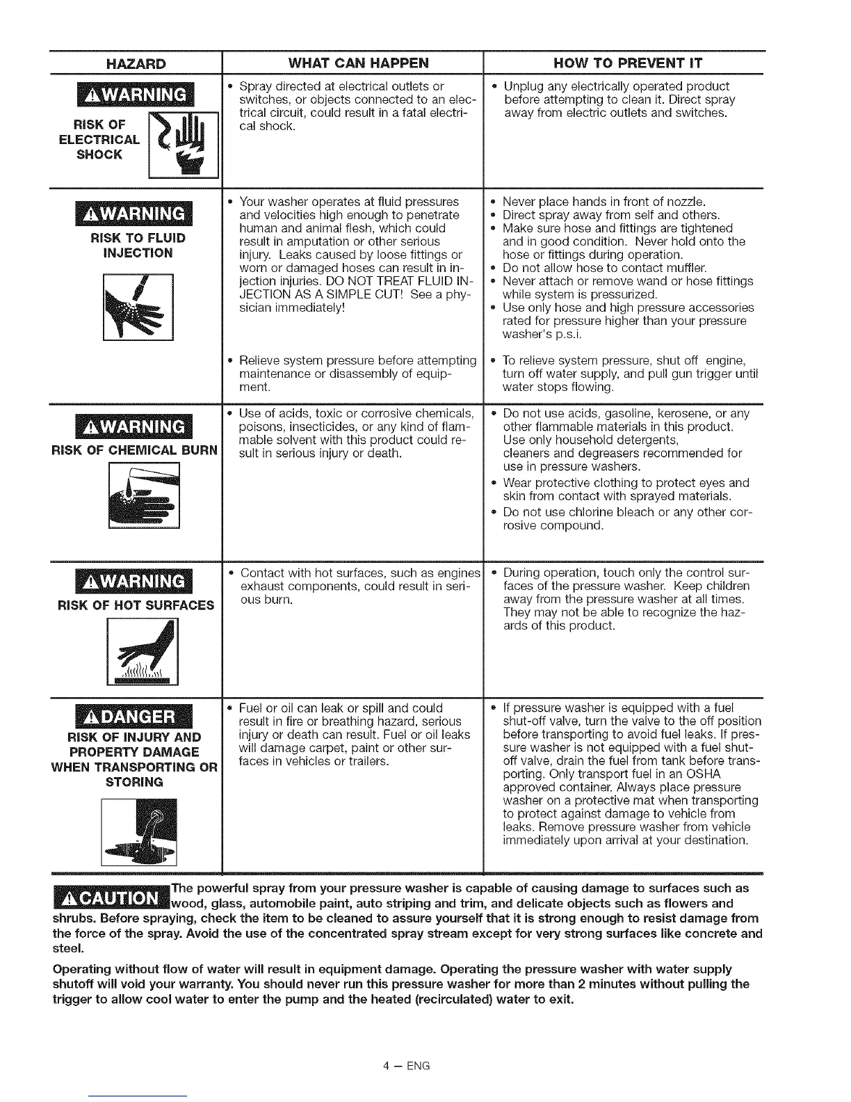 shutoff will void your warranty. You should never run this pressure washer for more than 2 minutes without pulling the