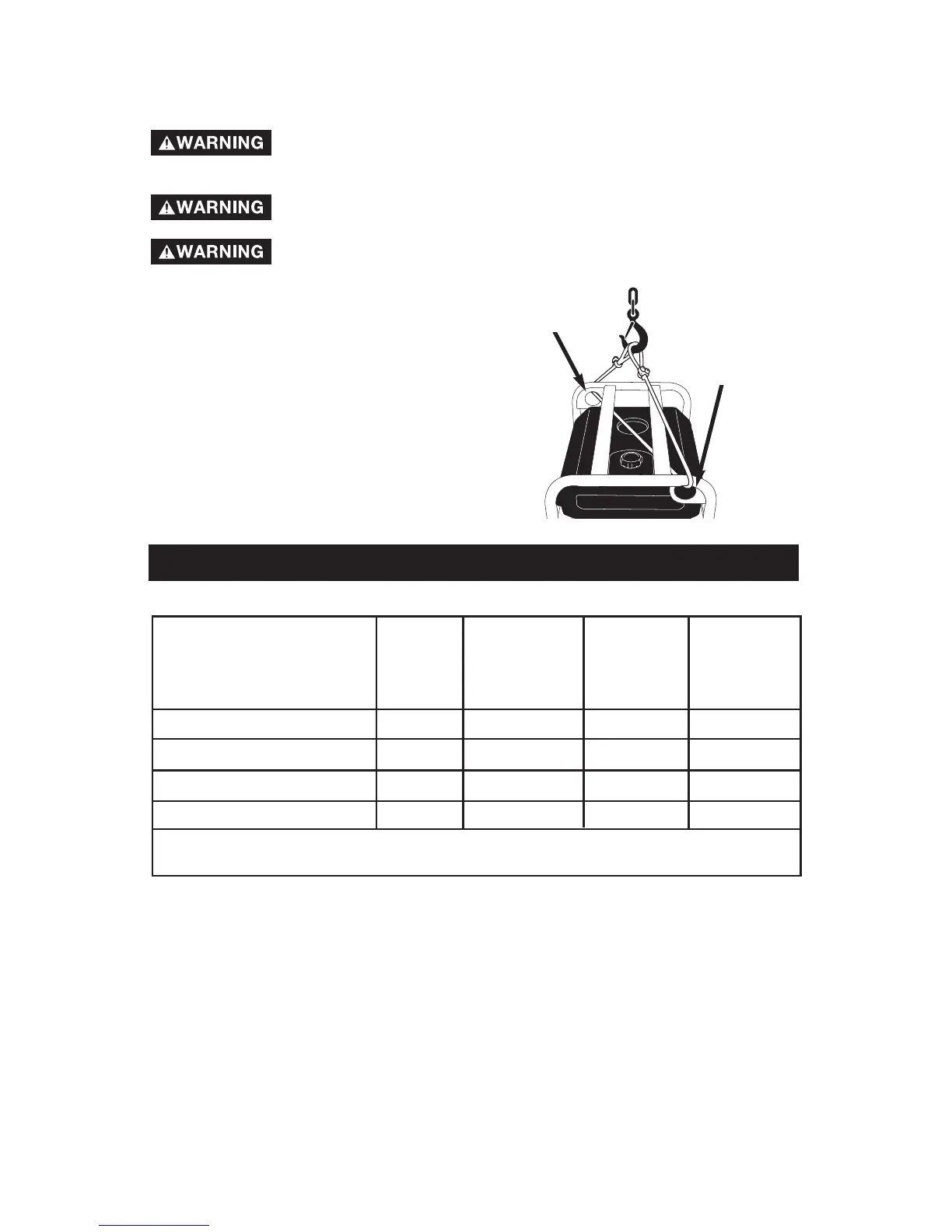 both lift rings as shown. ALWAYS