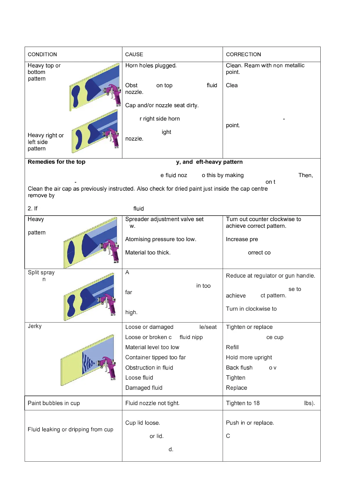 half turn and spray another pattern. If the defect is inverted, obstruction is on the air cap.