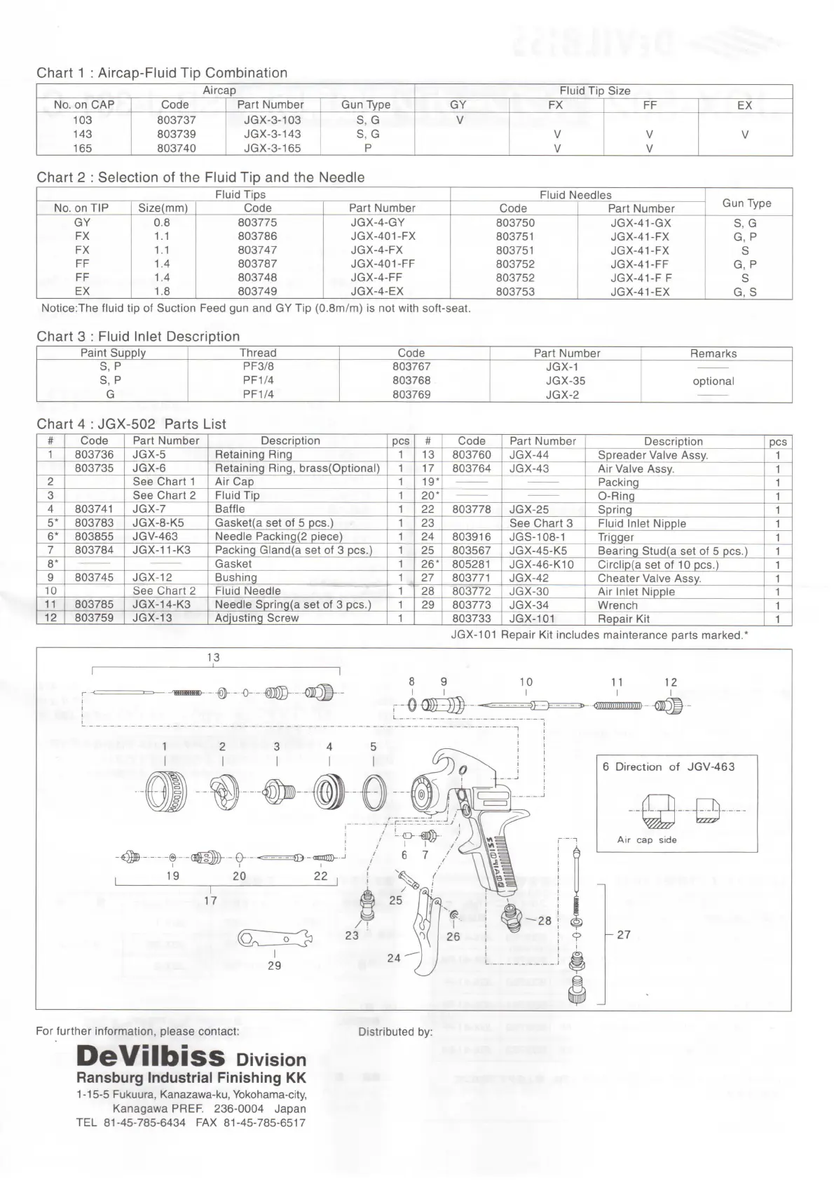 JGX-502 Parts List