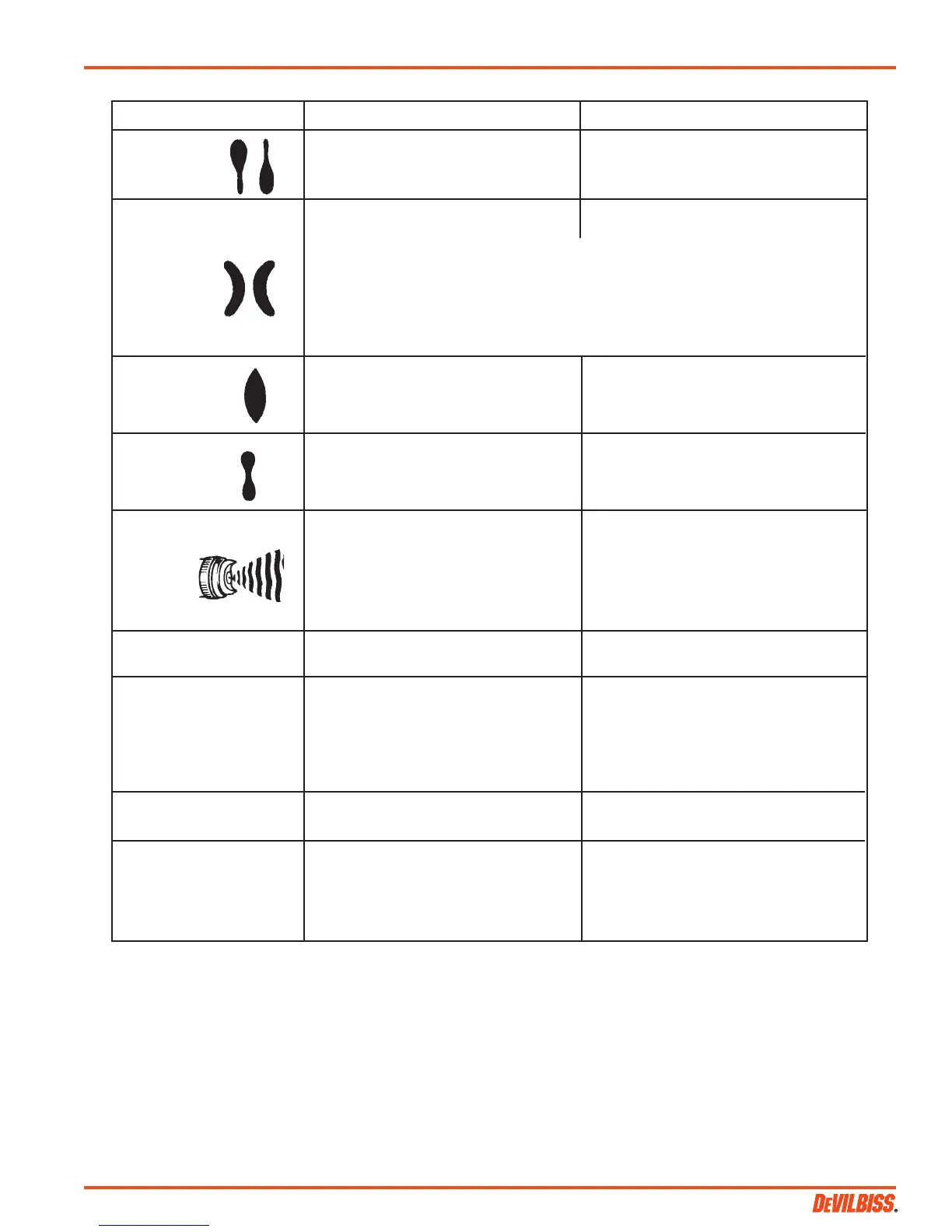 Heavy center pattern Too much material. Reduce fluid flow on suction guns. Reduce
