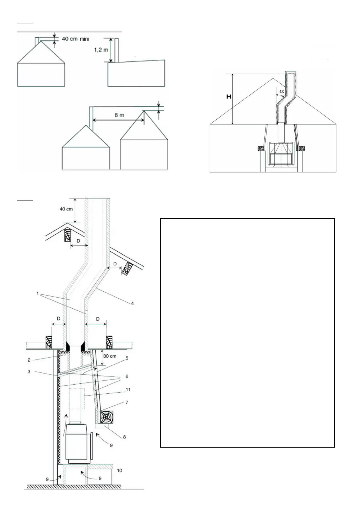 16 cm mini à partir de la paroi intérieure du conduit (ne pas