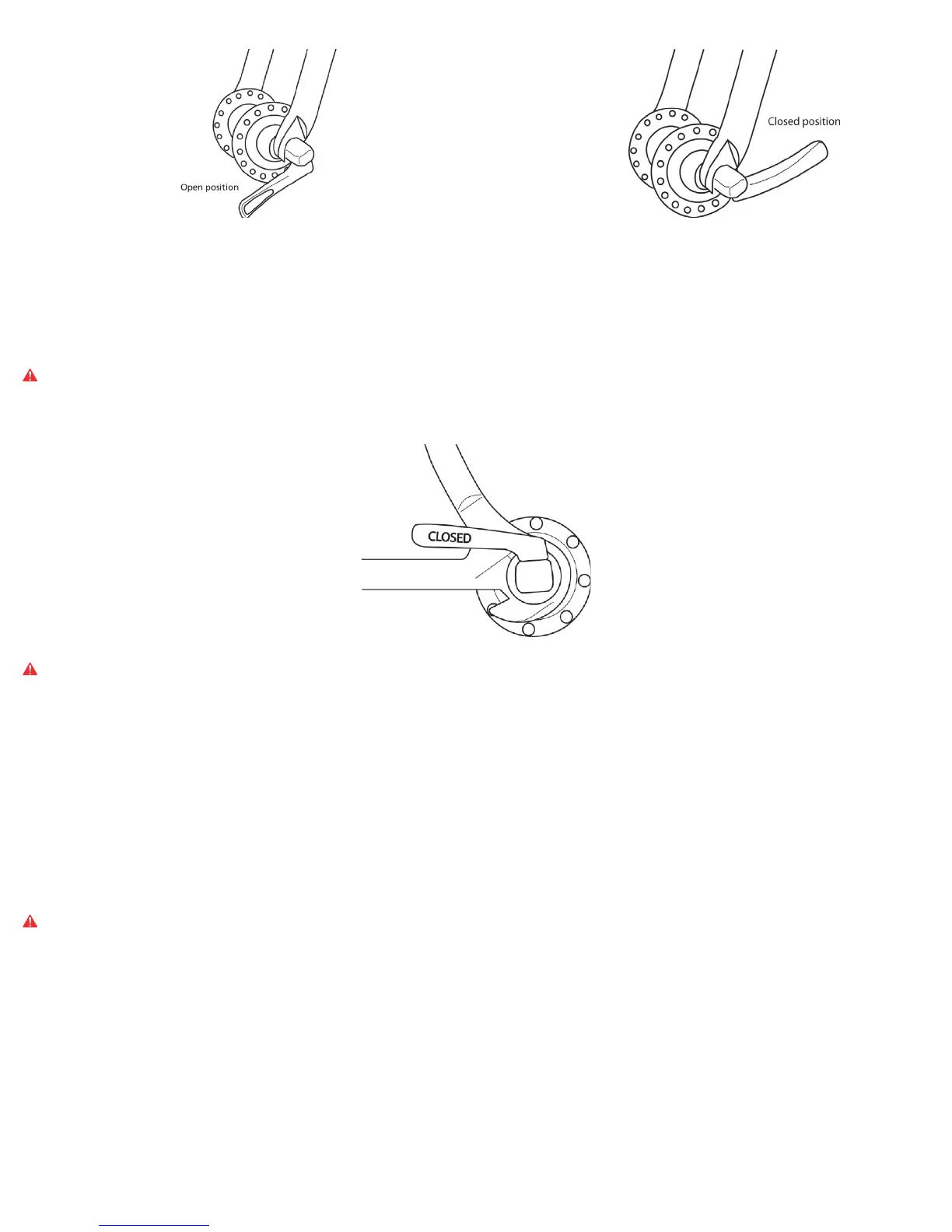 WARNING: The auxiliary retention system is not intended to replace adequate tightening of the quick release. If you use your bike and the quick releases are not tightened