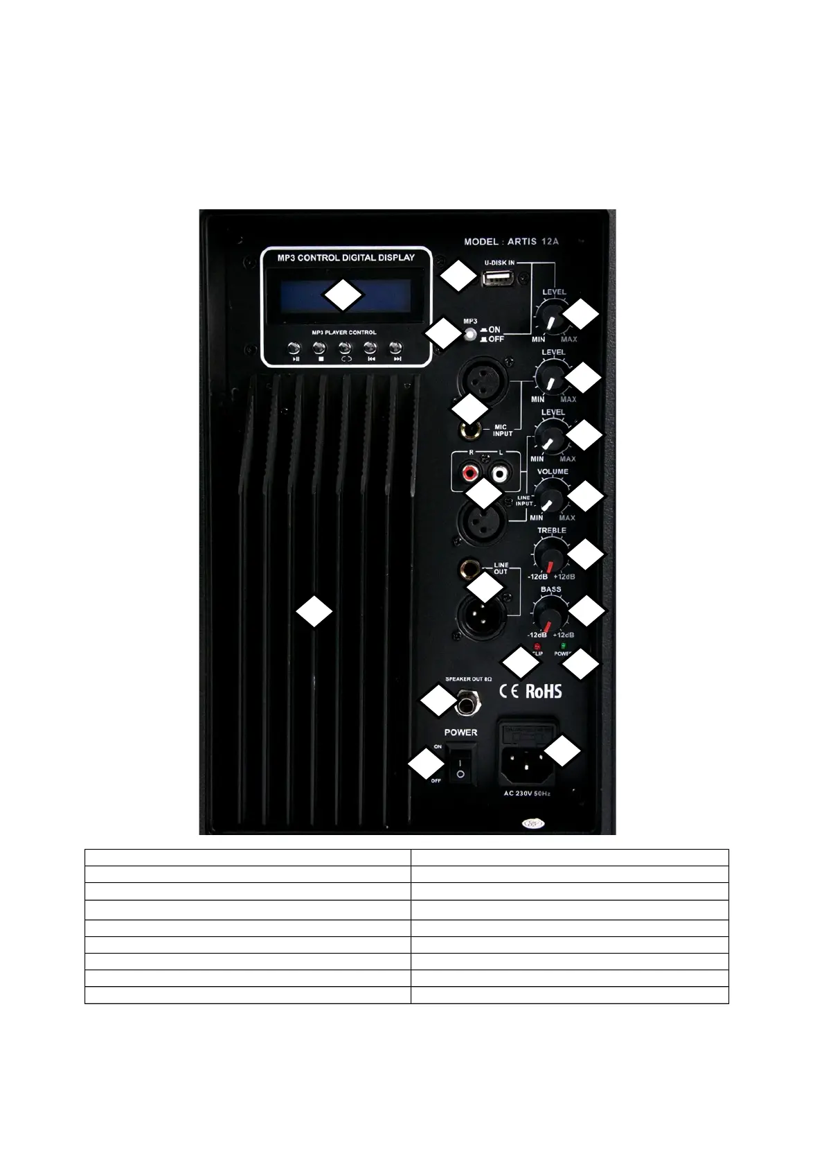 2. MP3 player USB input 11. EQ adjustment – bass (+/- 12 dB)