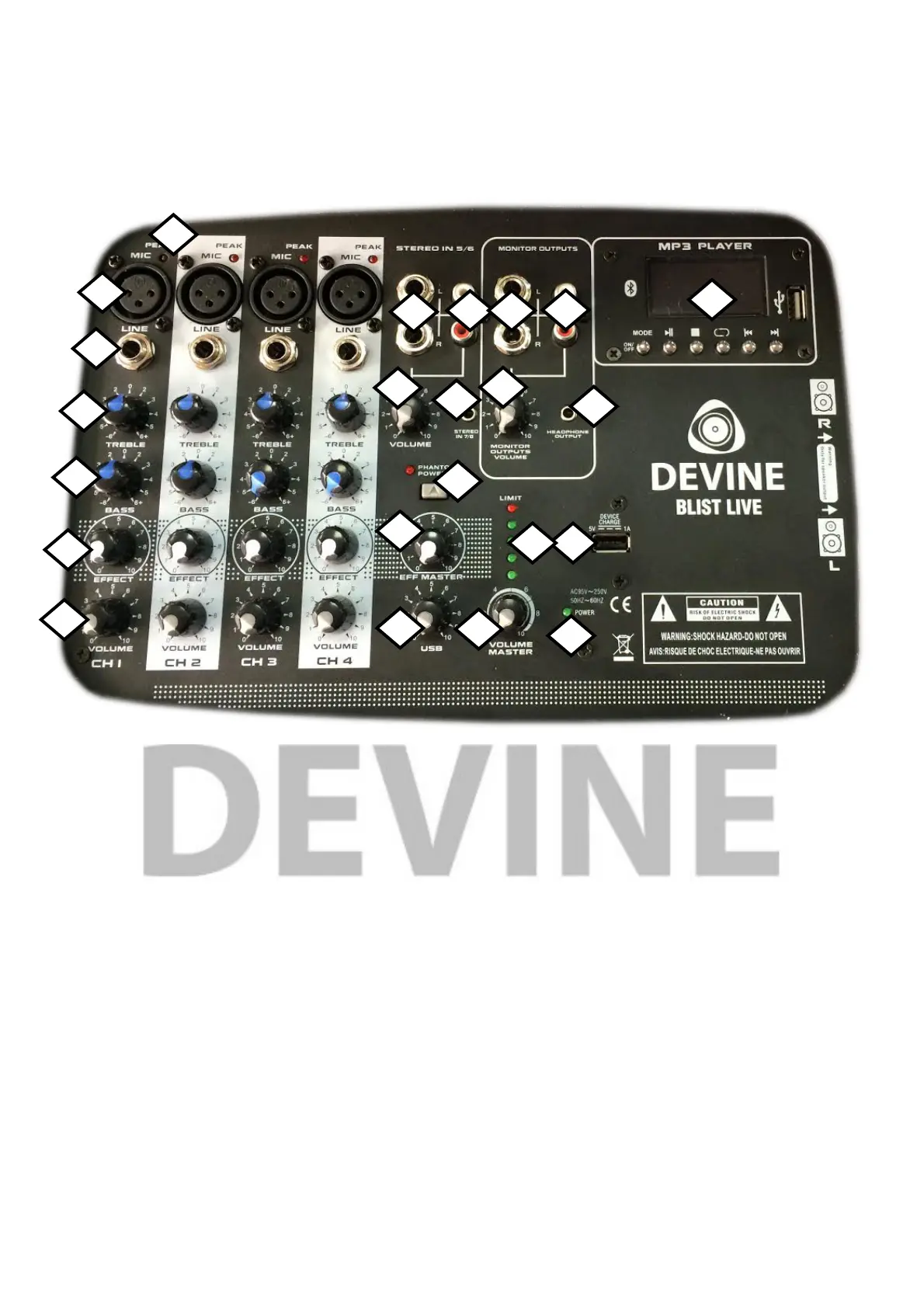 3. Red peak LED for each mono channel