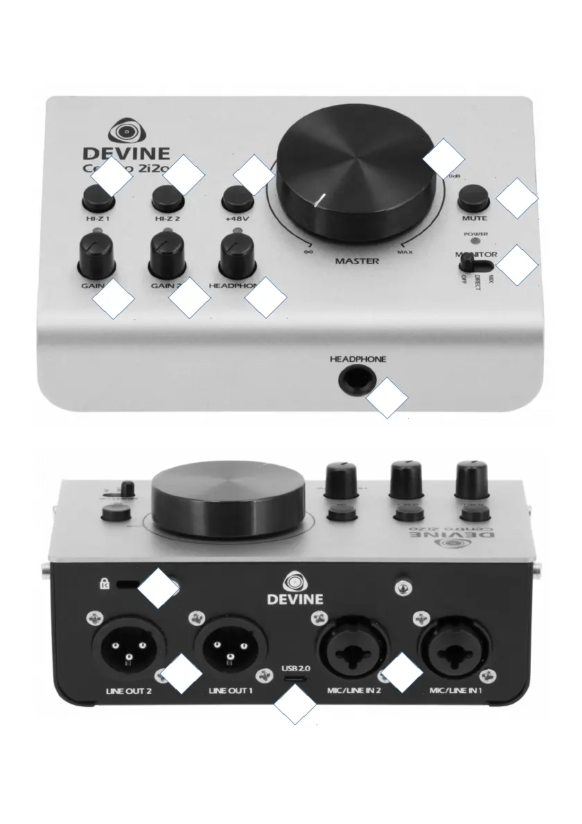 Devine Centro 2i2o - Device Overview and Operation; Front Panel Layout; Rear Panel Connections