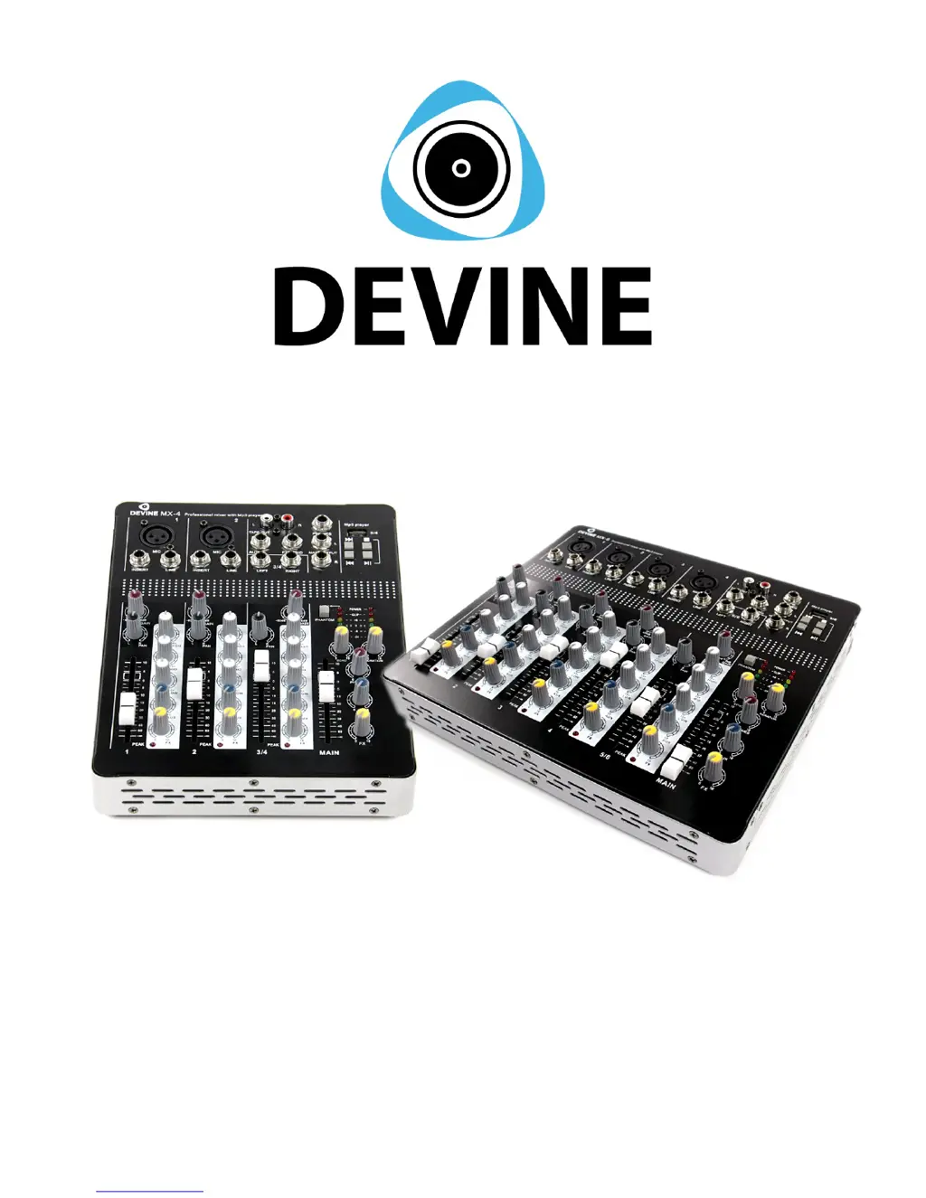 If there's no sound from your Devine Music Mixer, ensure the channel fader and master fader are slightly increased to the '0' position. Also, increase the gain until the Peak LED starts flickering slightly.