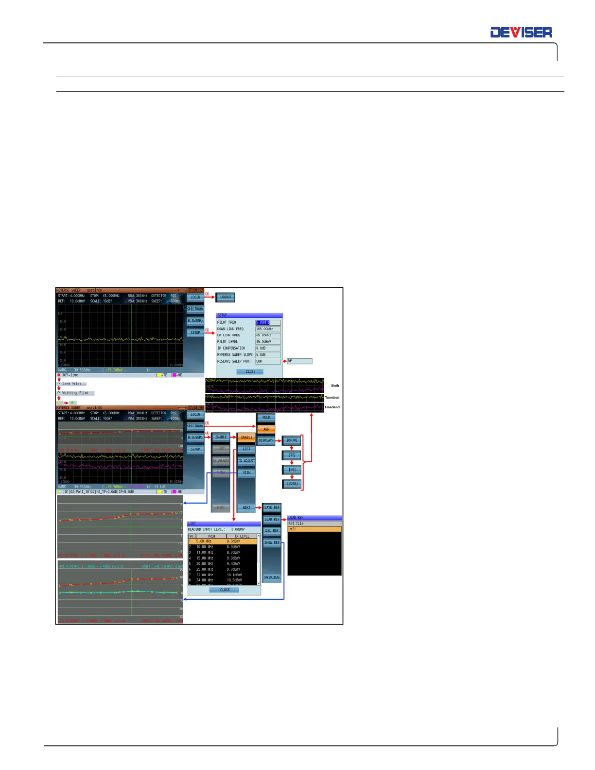 TE/HE/BOTH Cycles between Terminal End, Head End, and Both. The relevant spectrum trace can be