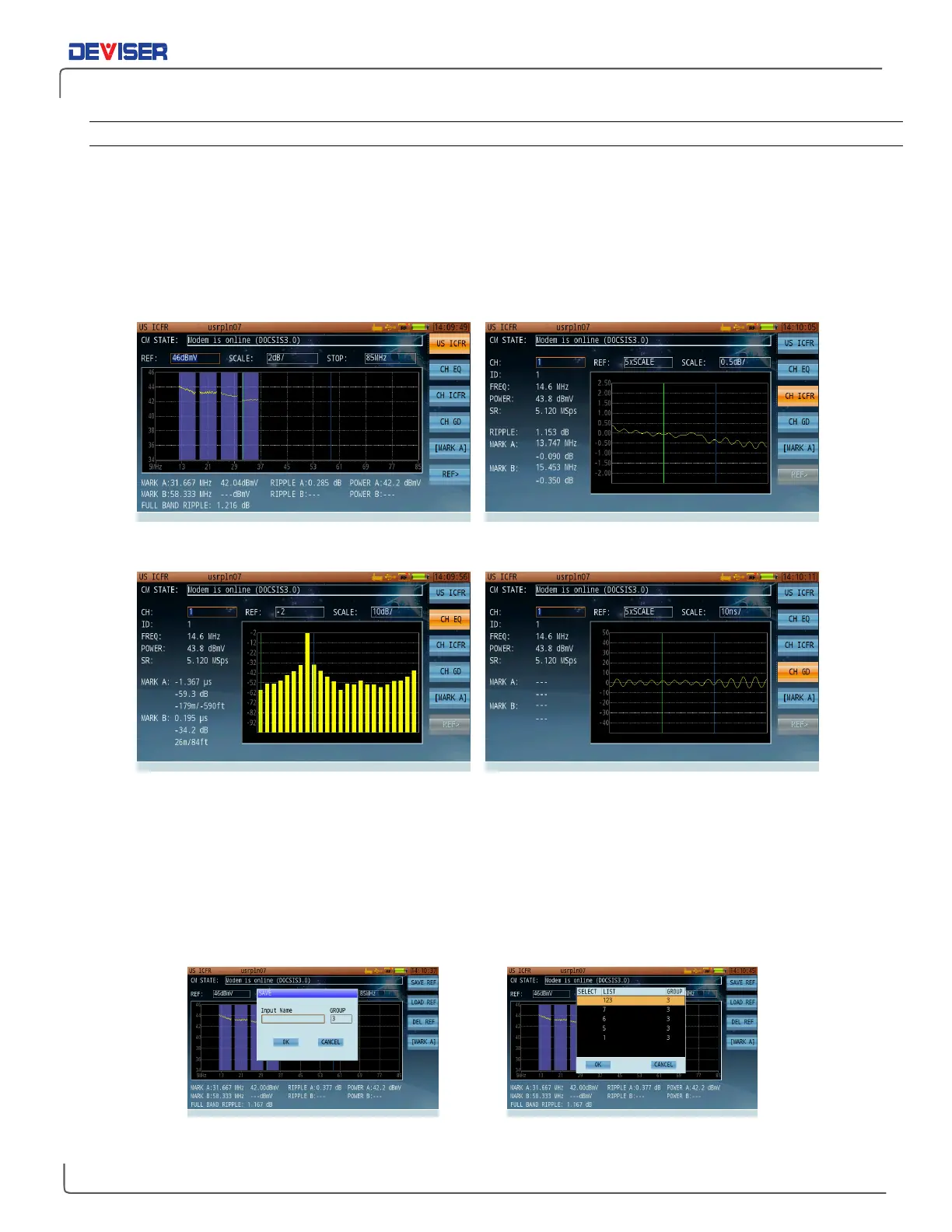 Optionally, you can also measure upstream in-channel frequency response, using the Cable Modem’s pre-