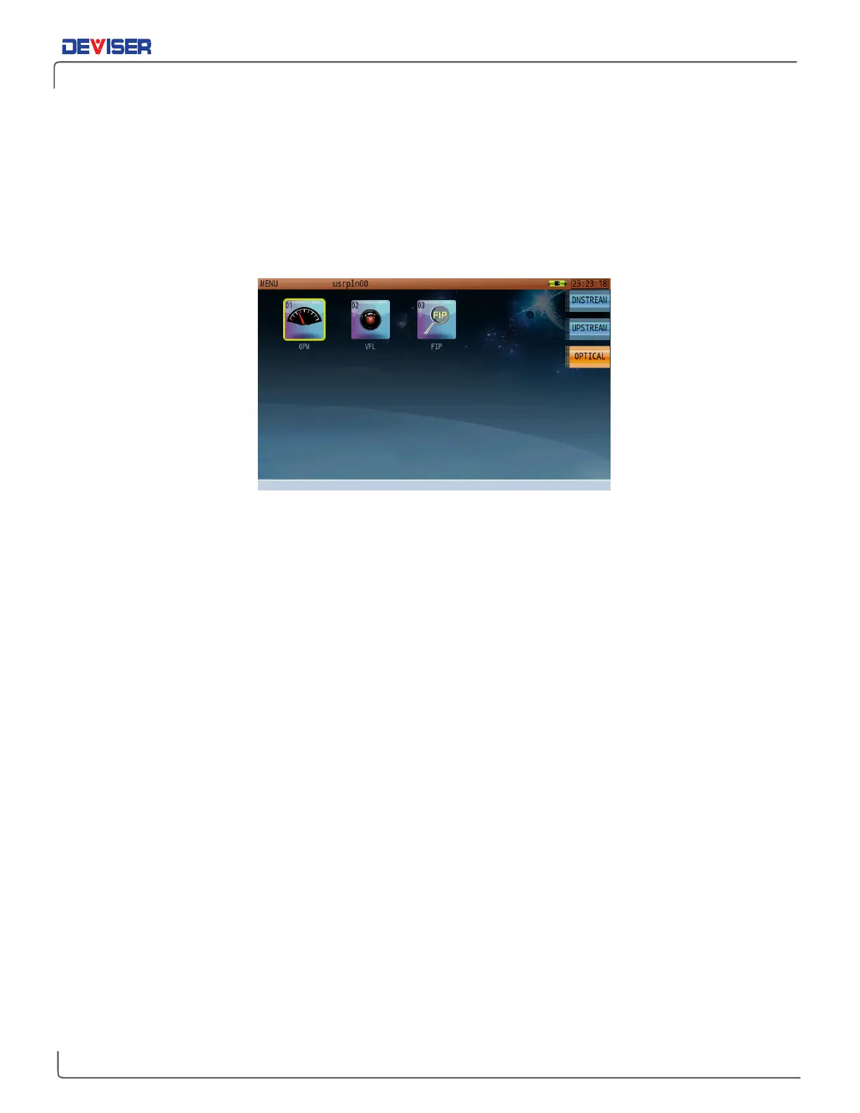 menu, press F3 to open the optical measurement menu (shown above). The optical power