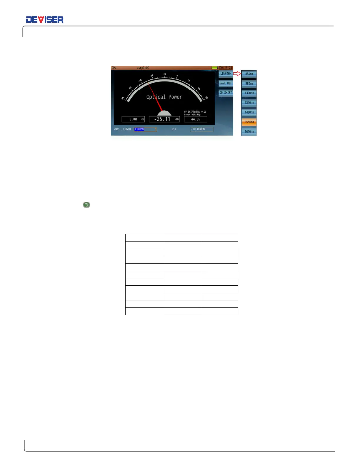 As shown above, set the wavelength as desired. Available wavelengths include 850, 980, 1300, 1310,