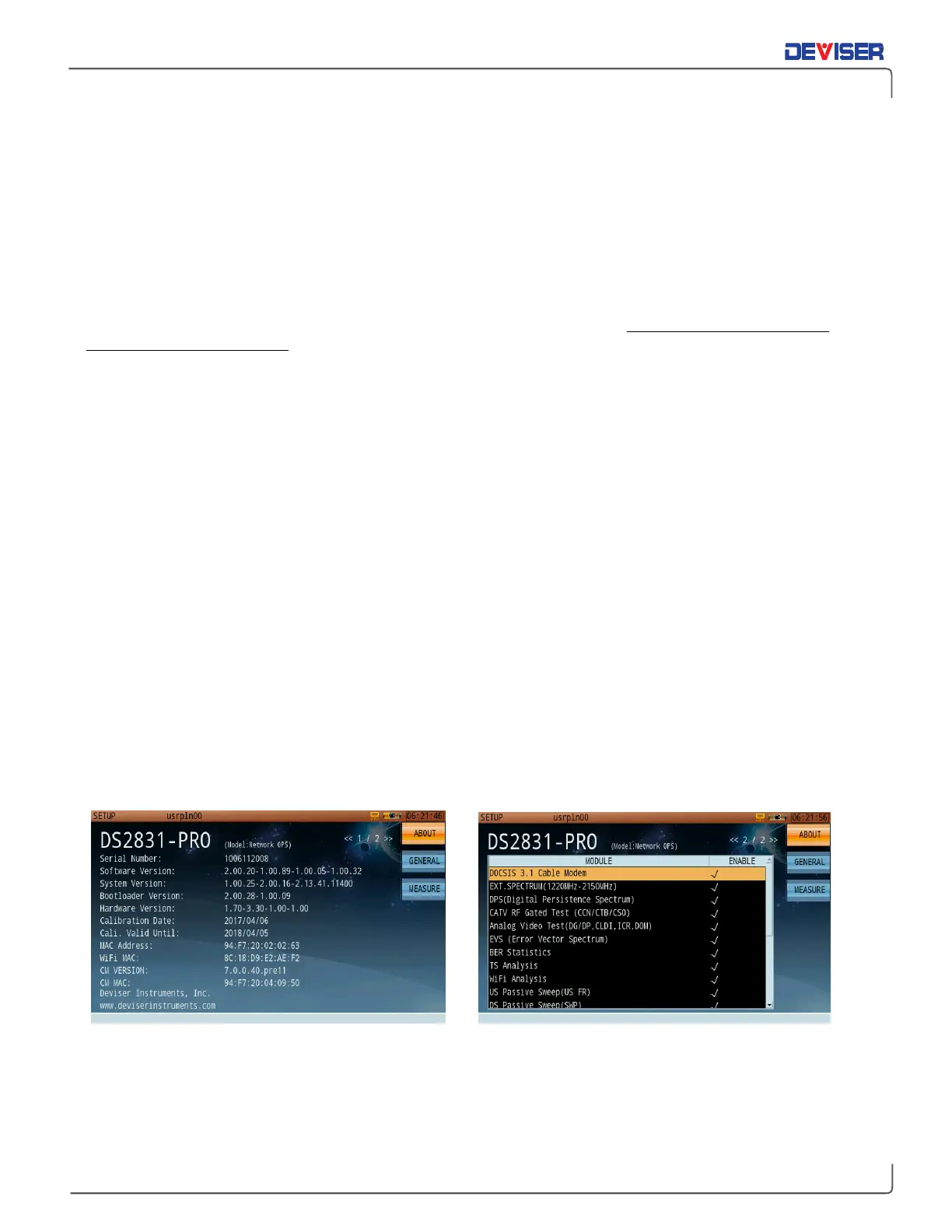 instrument. However, to enable a purchased option in the field, scroll to page 2 of the About screen (below