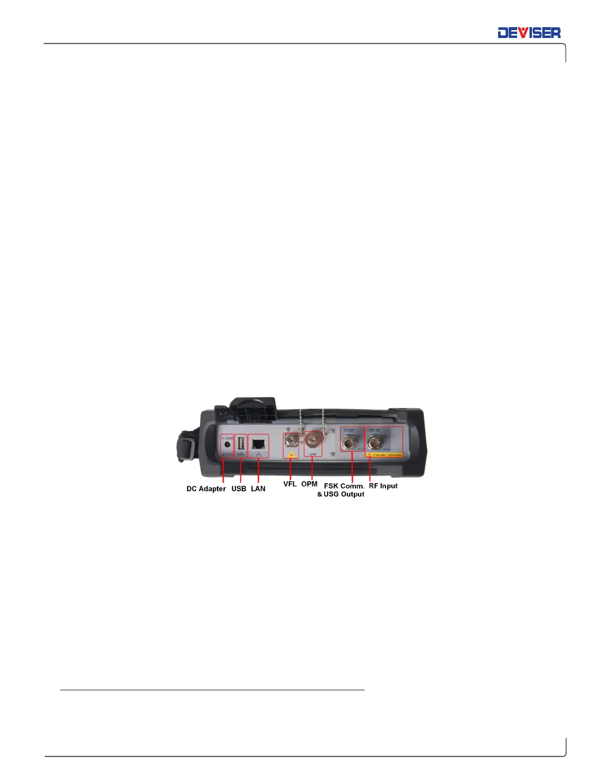 The test instrument’s top panel contains connectors and ports used to transfer data, charge the instrument,