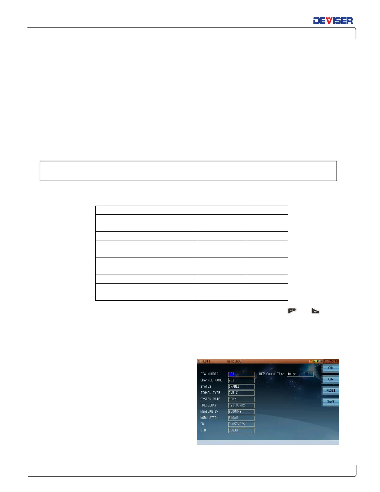 for the chosen standard. Use the CH+ and CH- keys