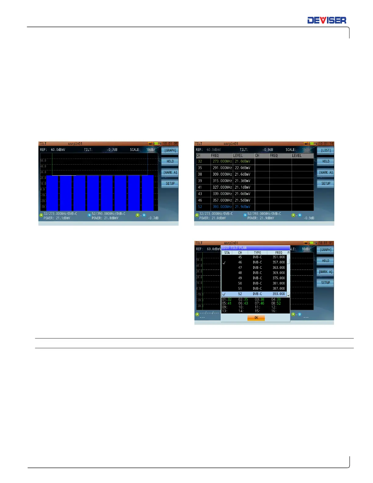 Tilt Measurement – Graph Display Tilt Measurement – Channel Listing Display
