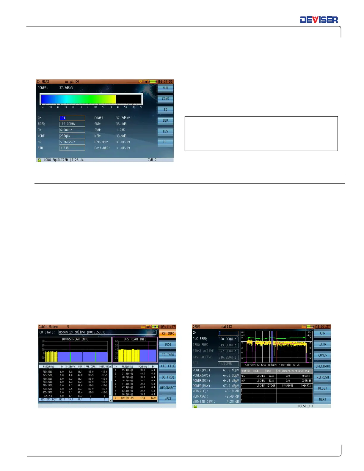 The digital channel measurement screen (shown below) displays basic digital metrics after demodulation.