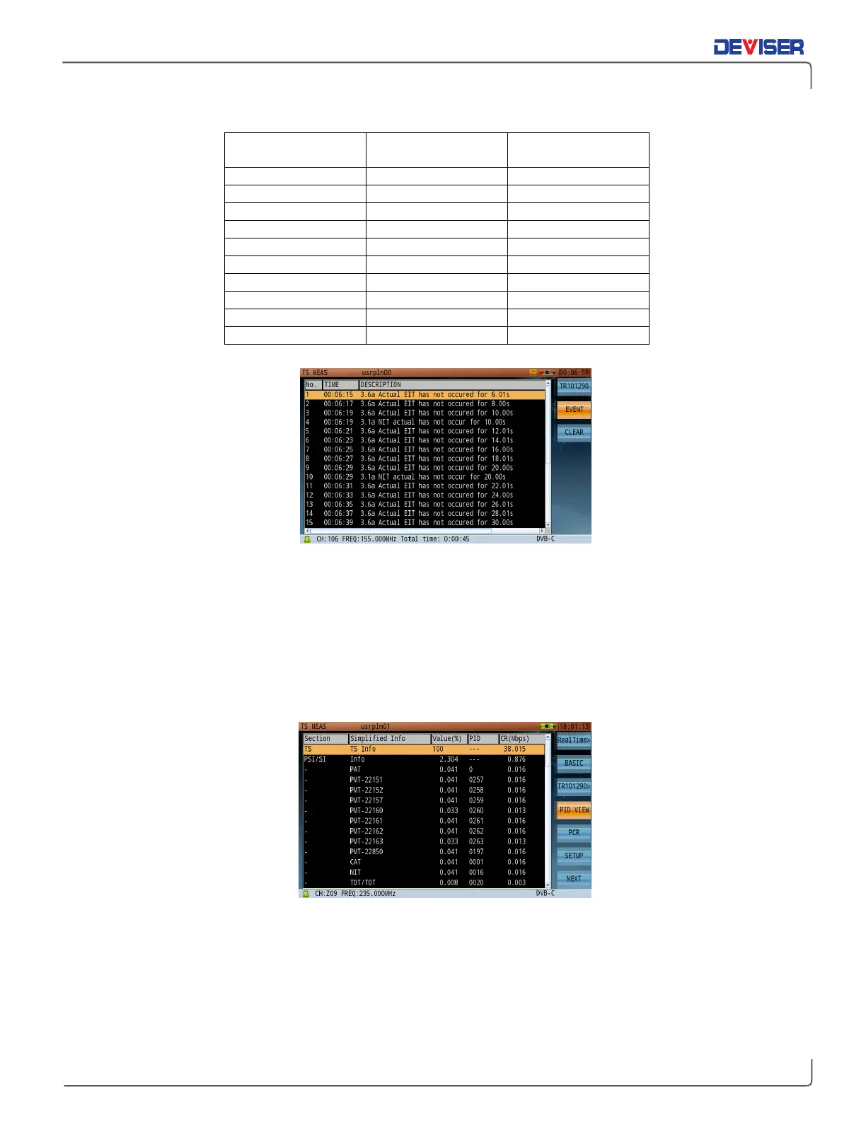 TR 101 290 Priority 1, 2 and 3 Tests Event List describes the detailed information for every event, including the