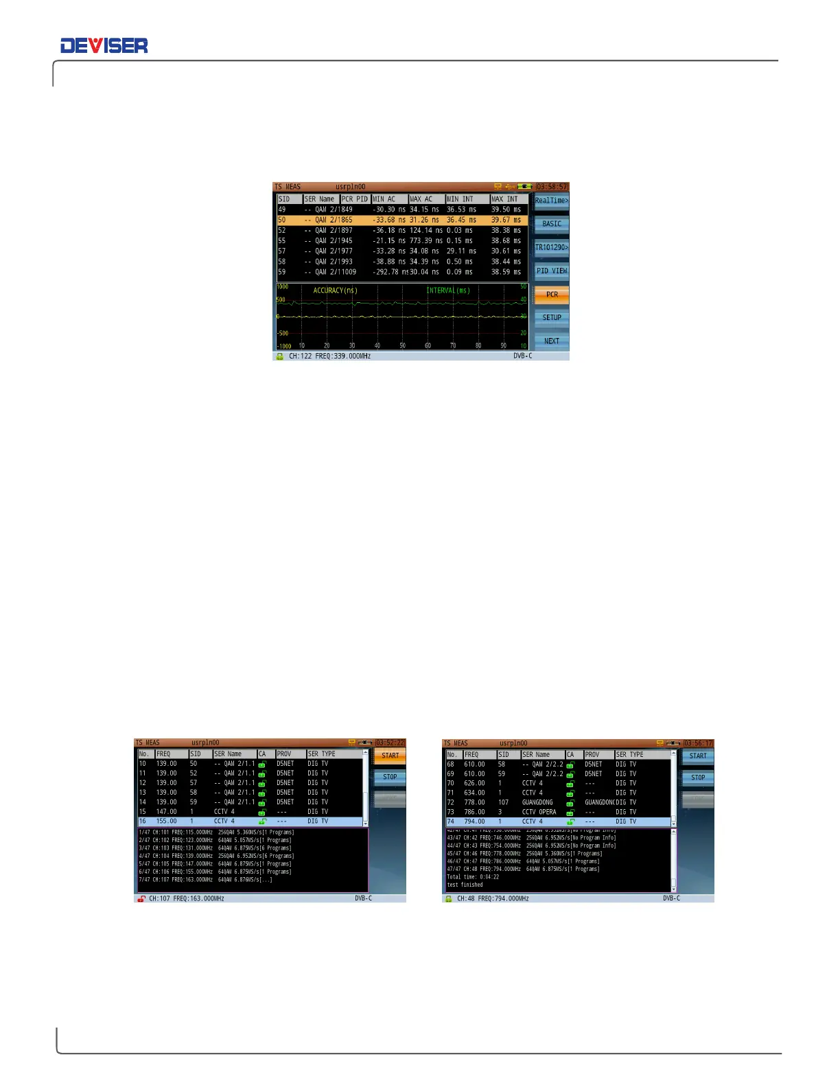 As shown above, the top half of the screen displays detailed PCR information in one transport stream,