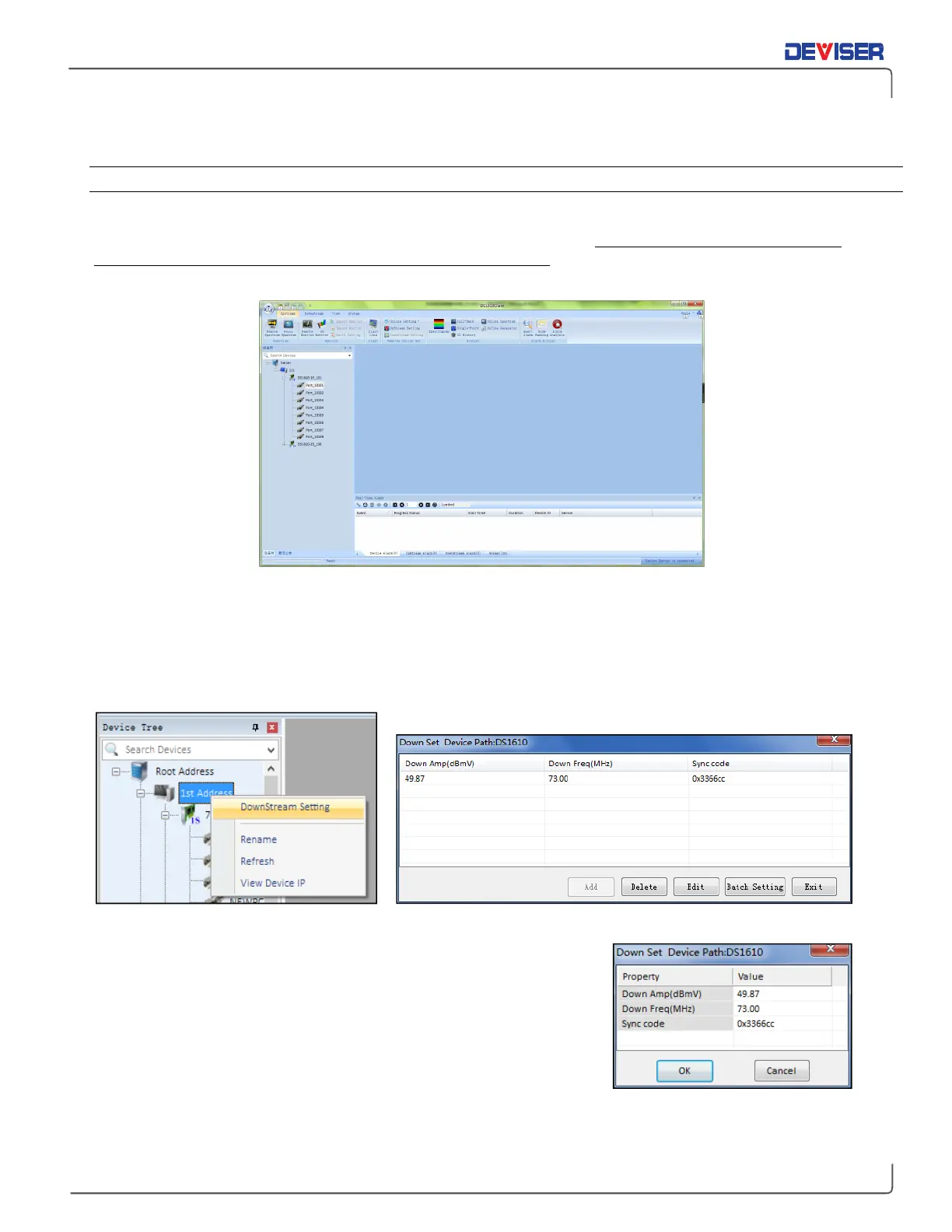 Find out DS1615 Parameters Setting Menu Open DS1615 Downstream Parameters Setting Interface