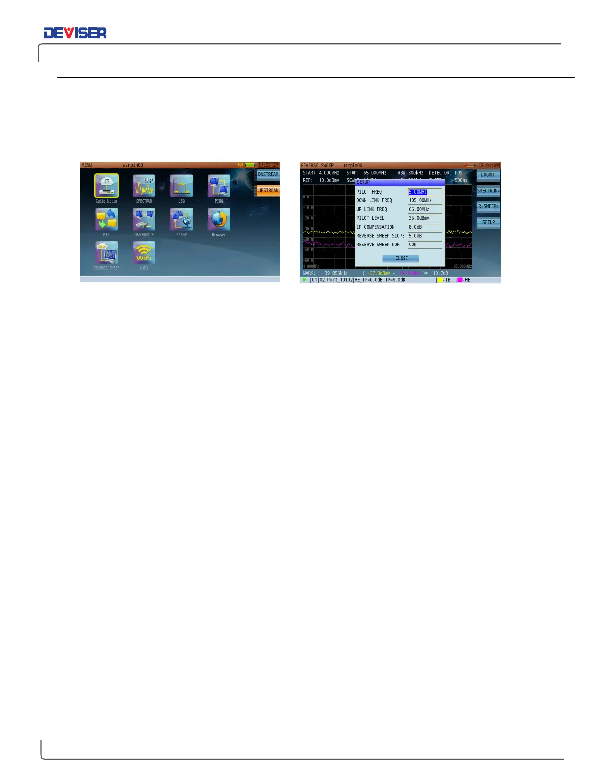 DS2831 Main Menu – (reverse sweep) DS2831 Reverse Sweep Communication Settings
