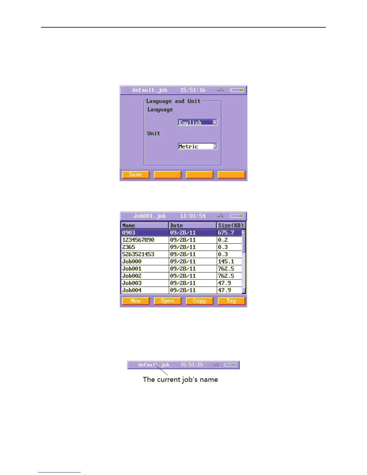 In the Job Information Setting menu, press “New”(F1)soft function key to create a new job folder and enter the setting menu of the
