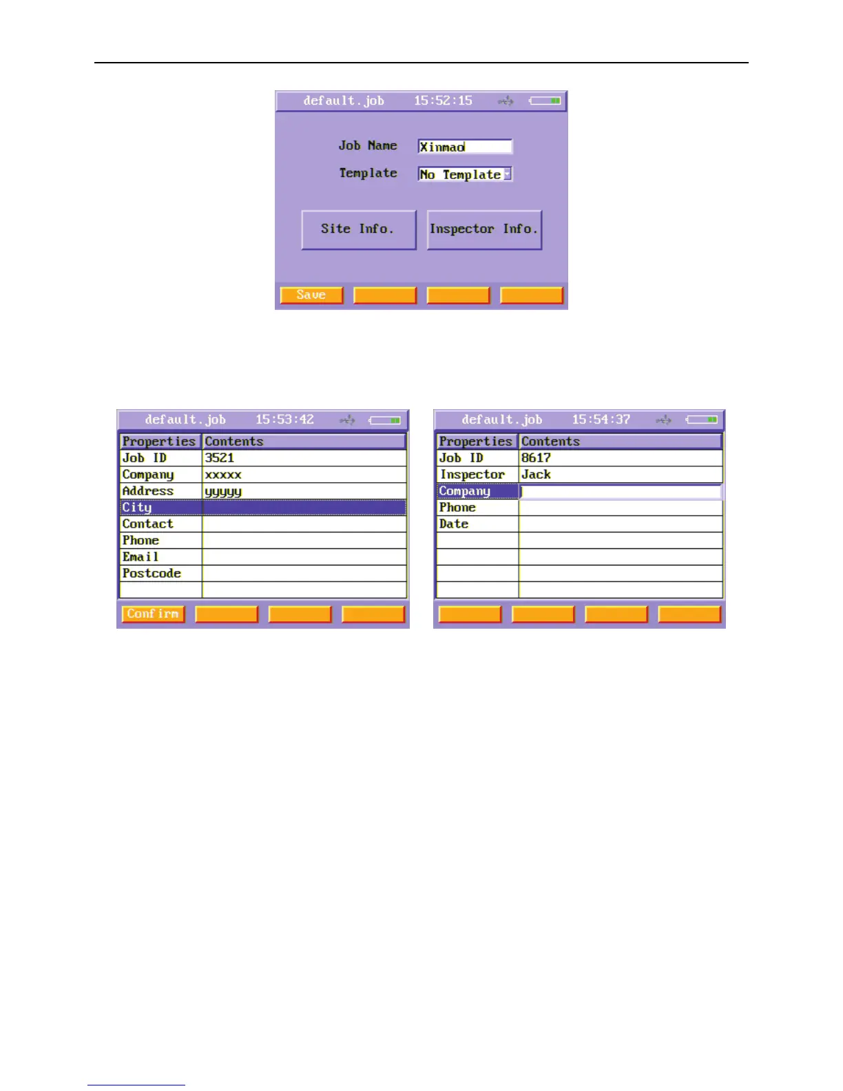 information. Just press “Site Info.” or “Inspector Info.” function button to enter site information and inspector information menu.