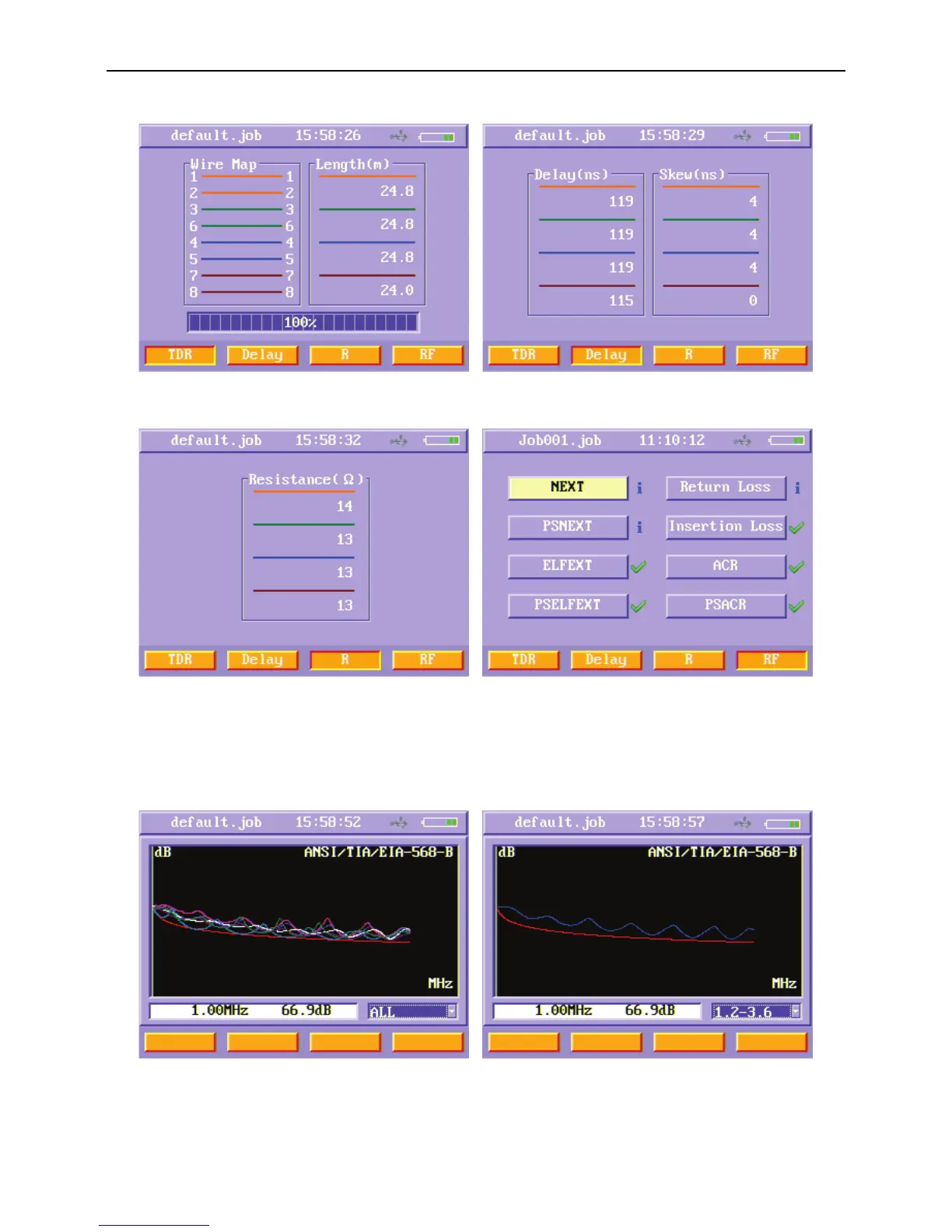 Figure22 Auto test TDR results menu Figure23 Auto test Delay results menu