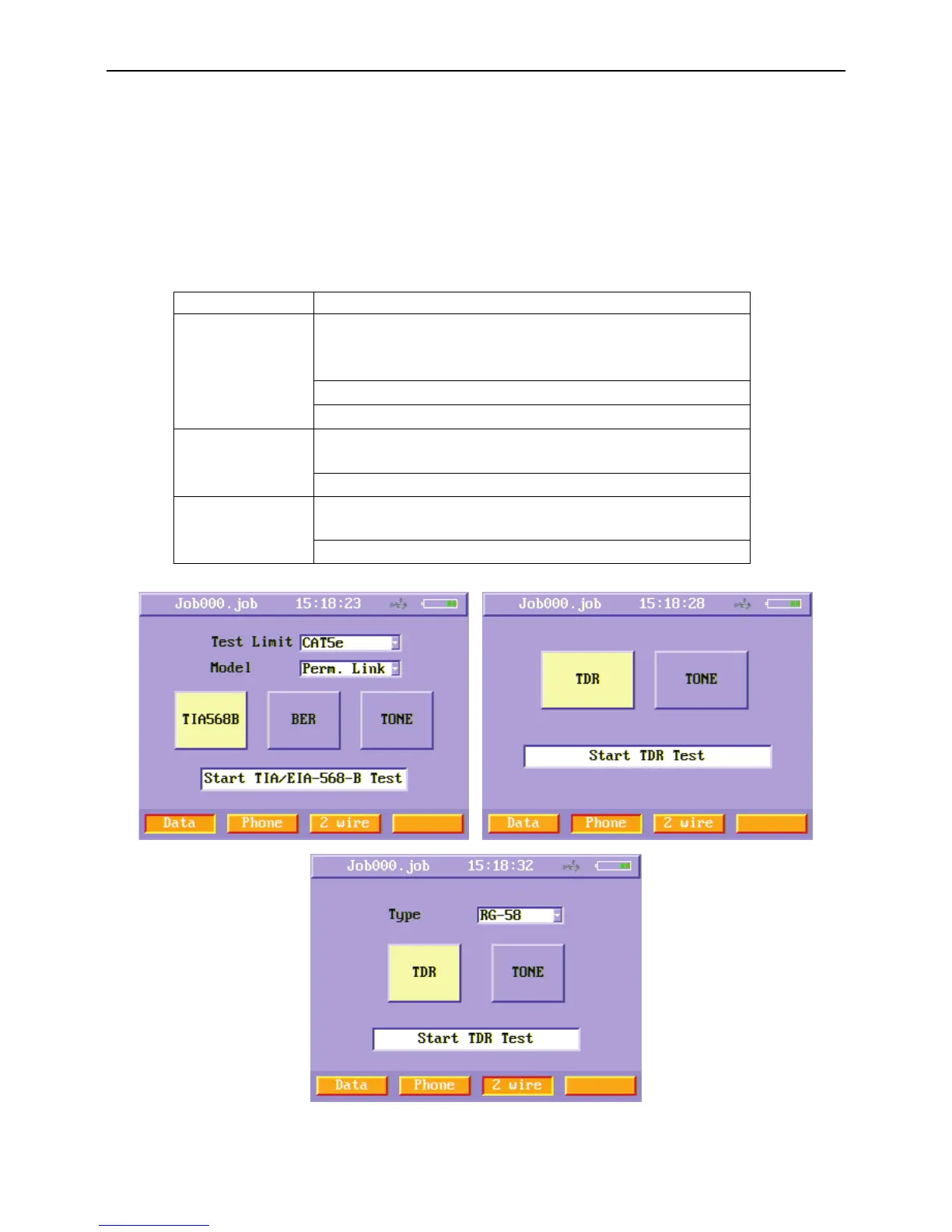 Manual test provides different test items according to different cable type. Table 2 shows the cable types and associated test items
