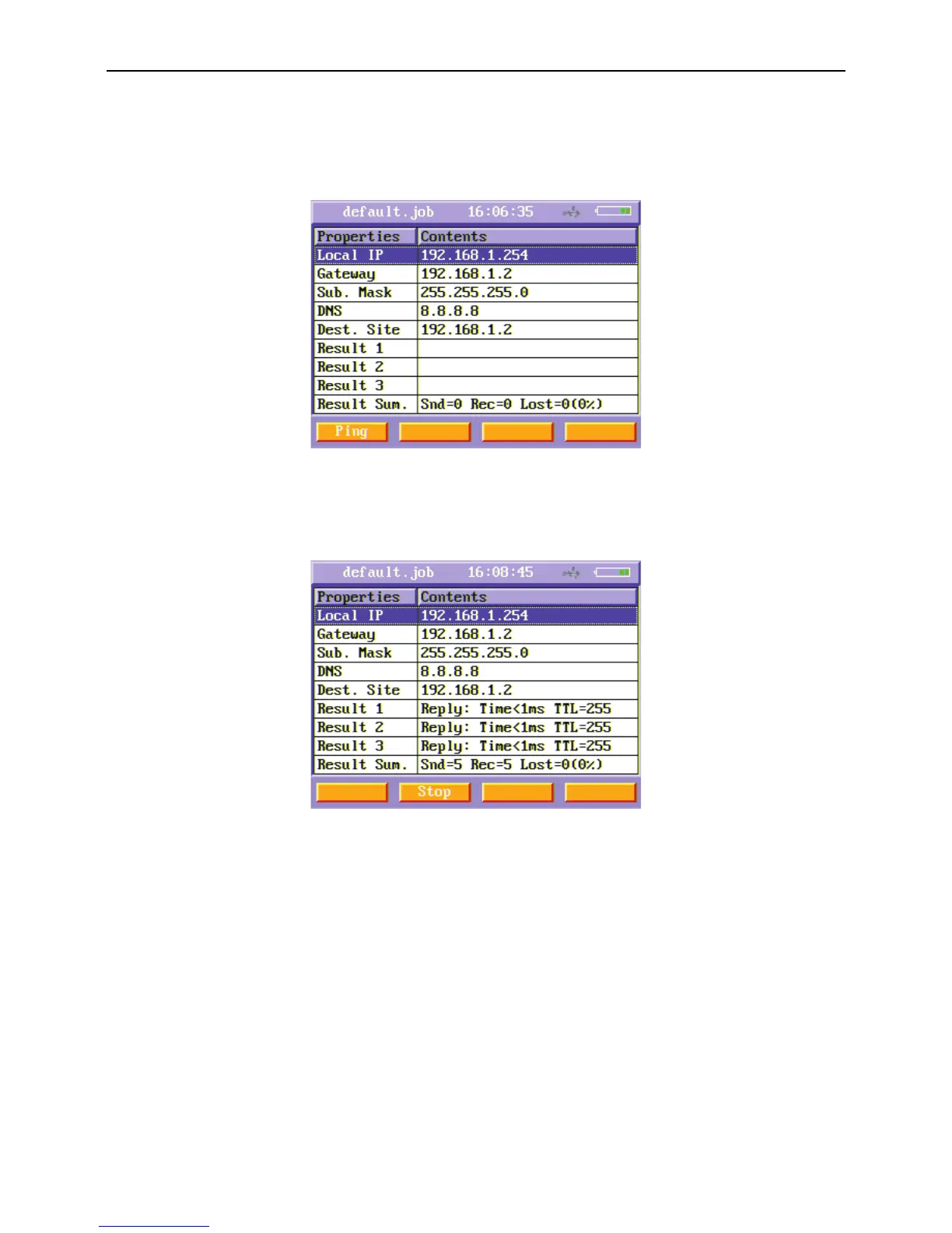 Users can ping the network using main unit in Network test. The ping test verifies connectivity to devices on the network. When