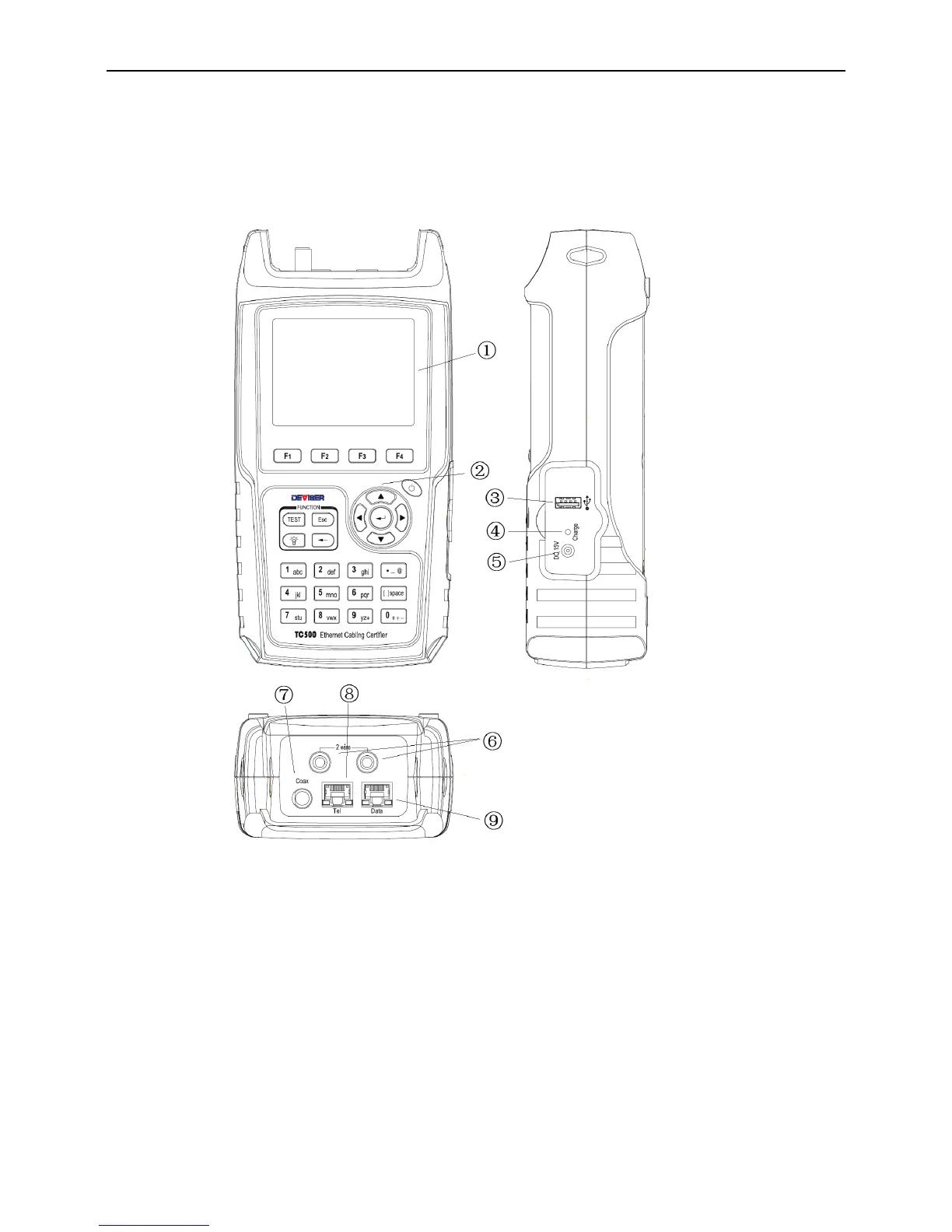 ① LCD ② Key Pad ③ USB Port ④ Charging LED