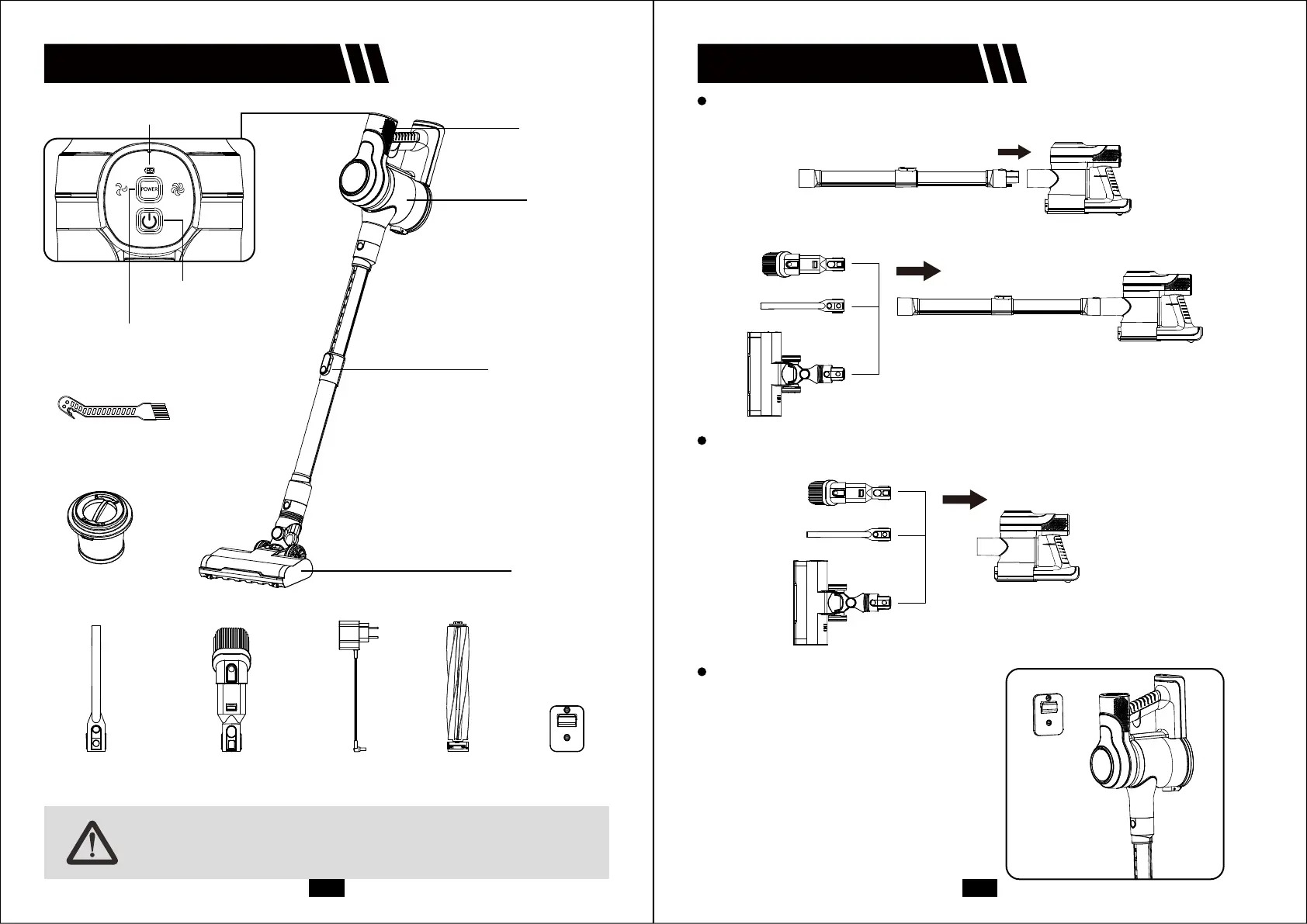1) Press the button on the brush head and attach the tube on until a click sound.