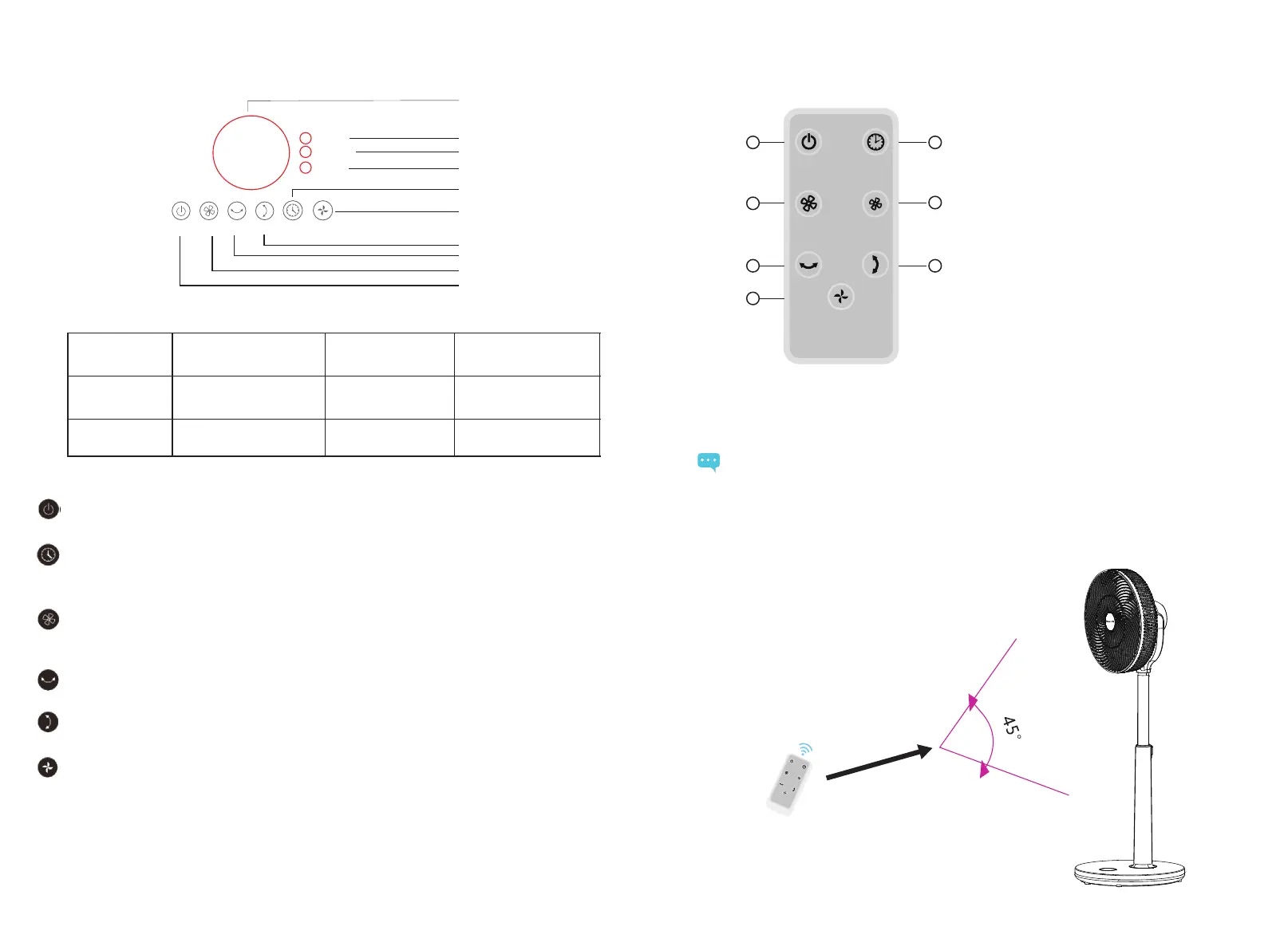 ON/OFF:When the fan is connected to power, press the ON/OFF button and it will switch on.