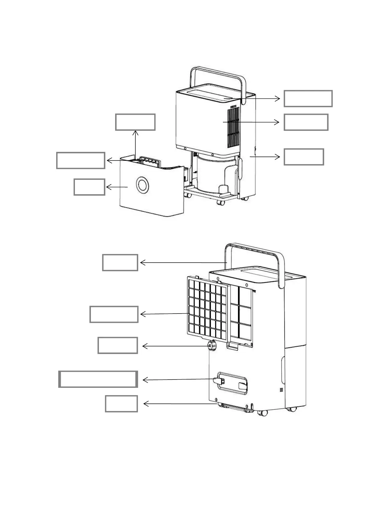 DEVOLA DV20QHWF - Dehumidifier Components; Front View Components; Back View Components