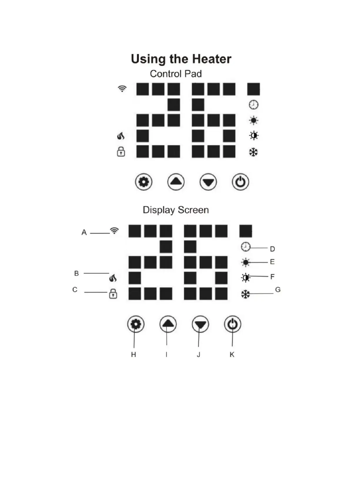 B. Working Status-The flame icon is displayed if the heater is in operation