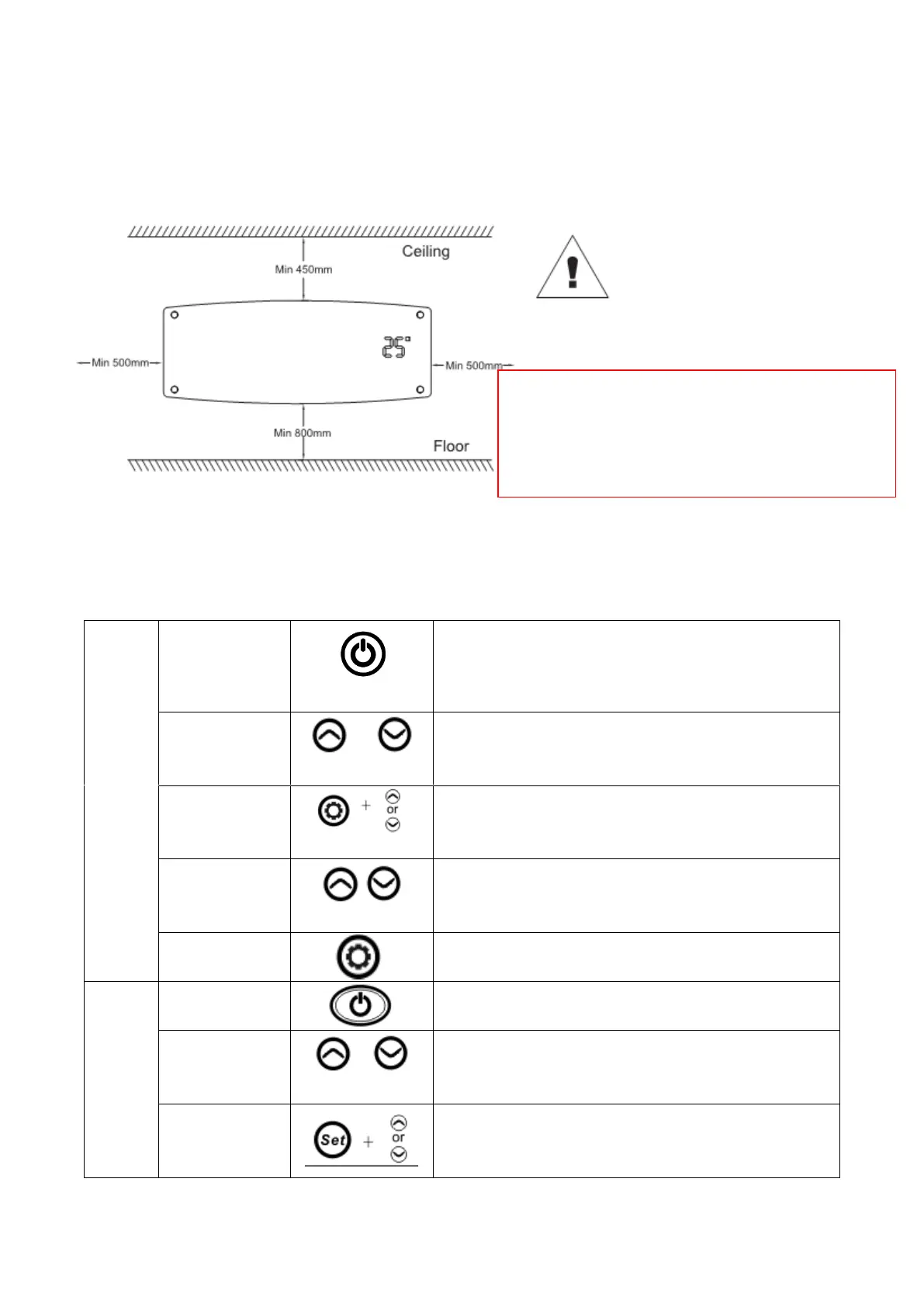 To take the heater off the wall, pull the heater upwards about 5mm and then to the left about