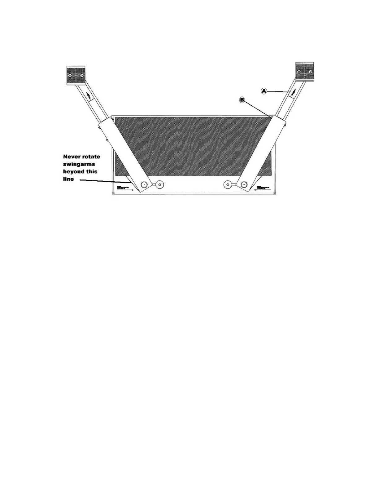 WARNINGS: When using Lifting Arms, Arms must not be rotated beyond the line decal