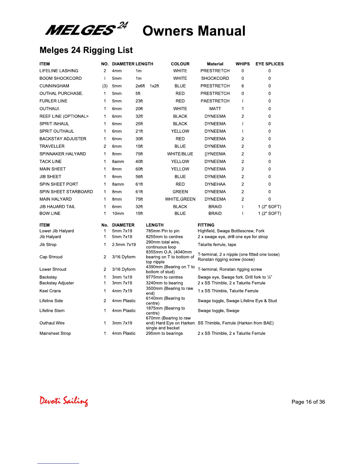 Devoti Sailing Melges 24 - Melges 24 Rigging List