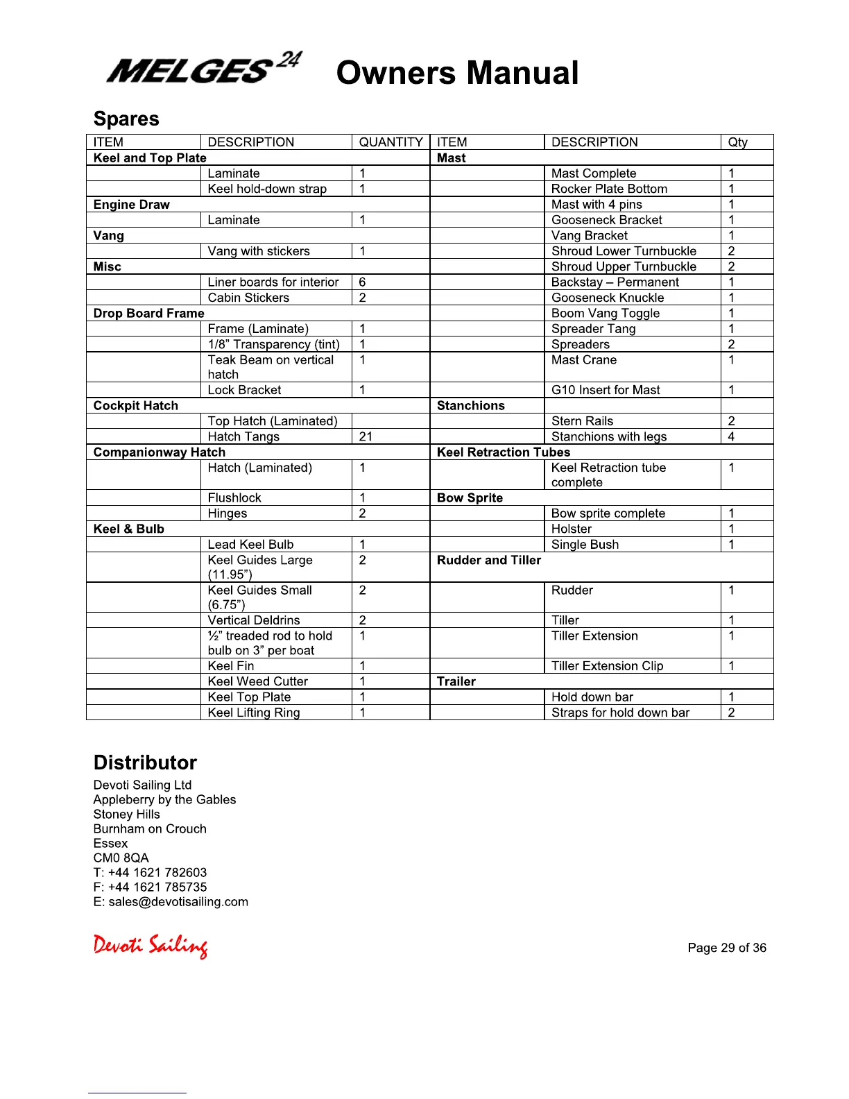 Devoti Sailing Melges 24 - Melges 24 Spare Parts; Melges 24 Distributor Information