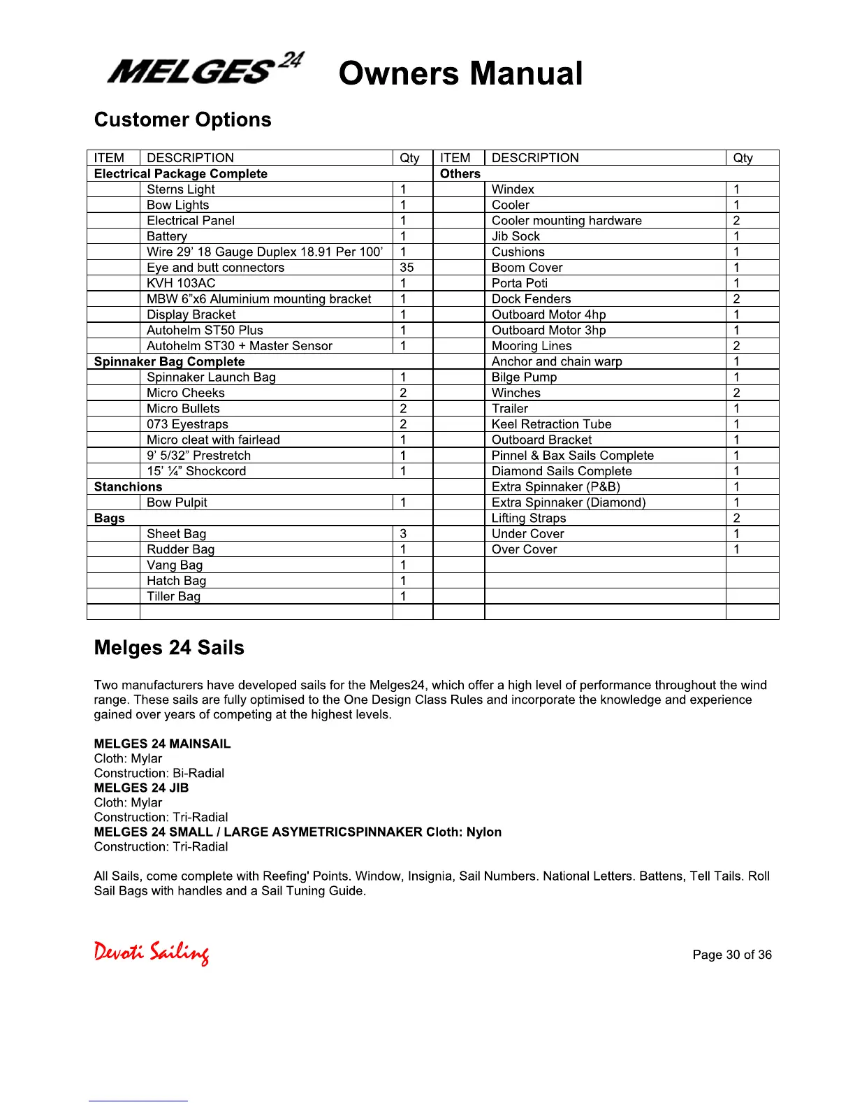 Devoti Sailing Melges 24 - Melges 24 Customer Options; Melges 24 Sails