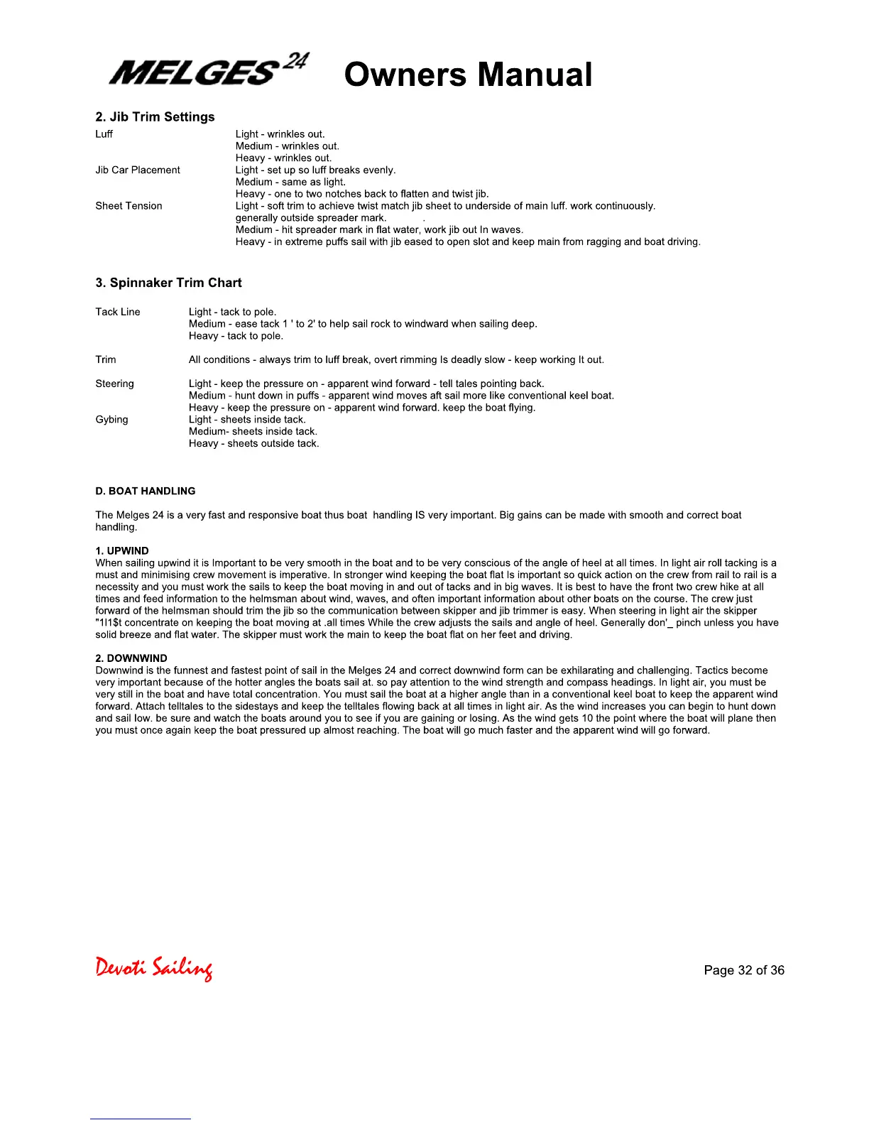 Devoti Sailing Melges 24 - Jib Trim Settings; Spinnaker Trim Chart