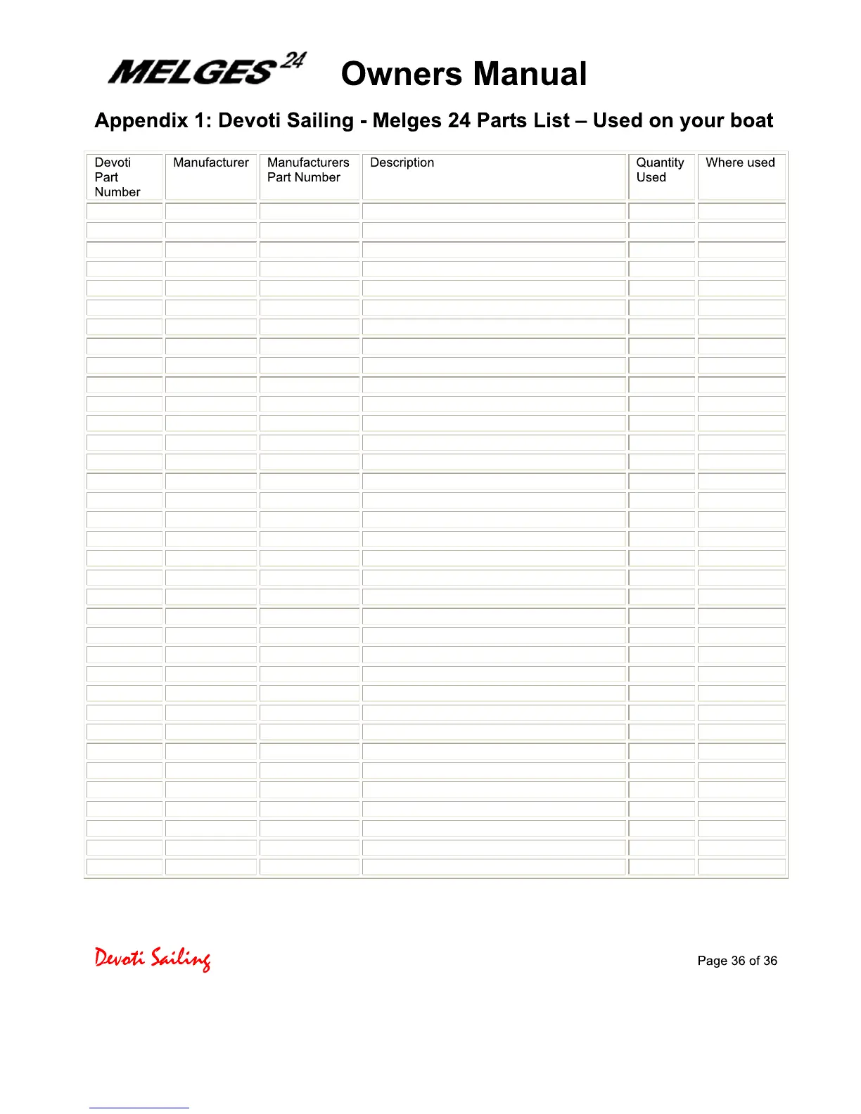 Devoti Sailing Melges 24 - Appendix 1: Devoti Sailing - Melges 24 Parts List